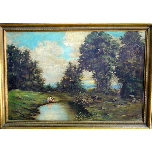 BARBIZON SCHOOL OIL PAINTING ON ARTIST BOARD SIGNED G. LAURIA