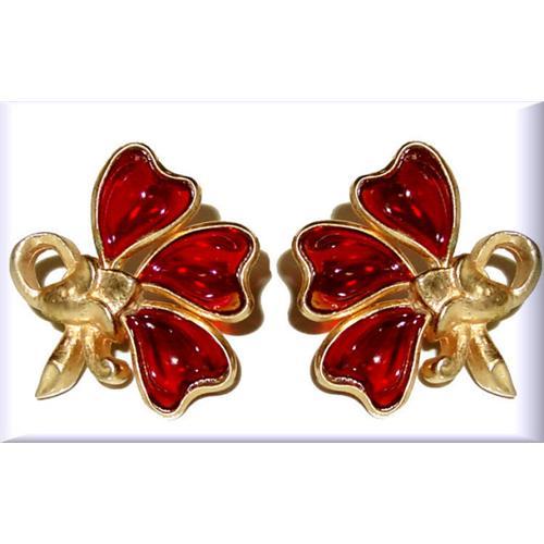 Up for sale is a pair of signed Barclay red glass inset screw-back earrings. They are from the late 1940s. The gold has faded in a couple spots but it doesn?t take away from the beauty and design.