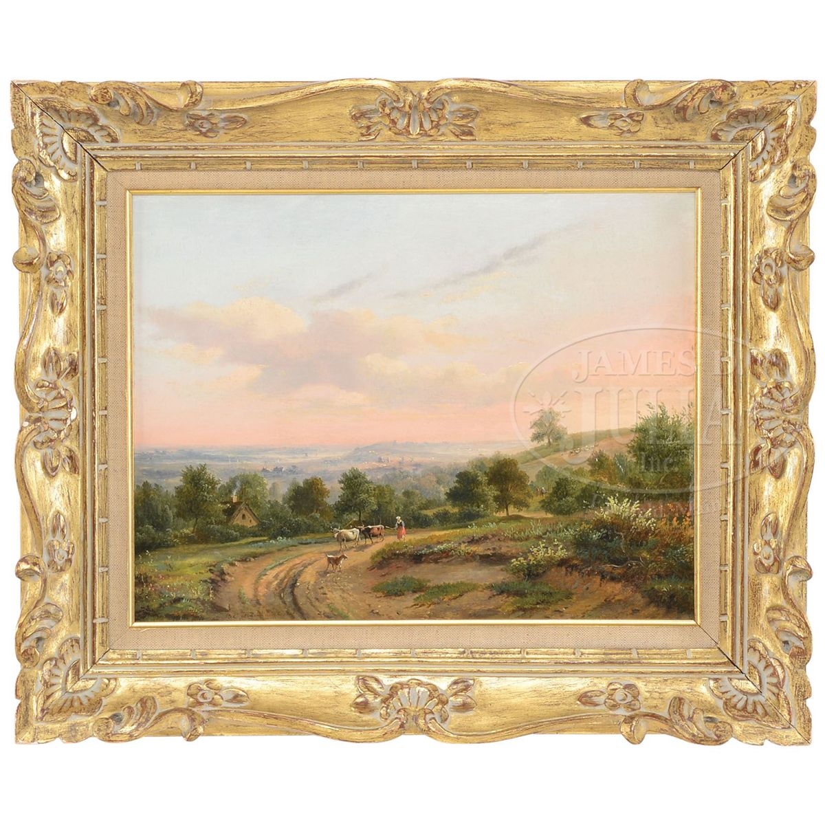 Oil on wood panel Housed in a replacement gilt carved frame with linen and gold liner Signed lower left "B.C. Koekkoek 1826" and having an old label with artist and description on reverse held on with wax seal SIZE: 11-3/4" x 15-1/4". Overall: 17-1/4" x 20-1/2". CONDITION: Very good. 9-29402