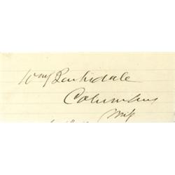 <b>42. WILLIAM BARKSDALE</b> (1821 - 1863) Confederate brigadier general who commanded a brigade at Antietam, Fredericksburg, Chancellorsville, and Gettysburg, where he was mortally wounded and captured. Exceptionally rare signature "<i>Wm. Barksdale Columbus Miss</i>". Boldly signed, fine condition and ideal for framing.<b> $700-900</b>
