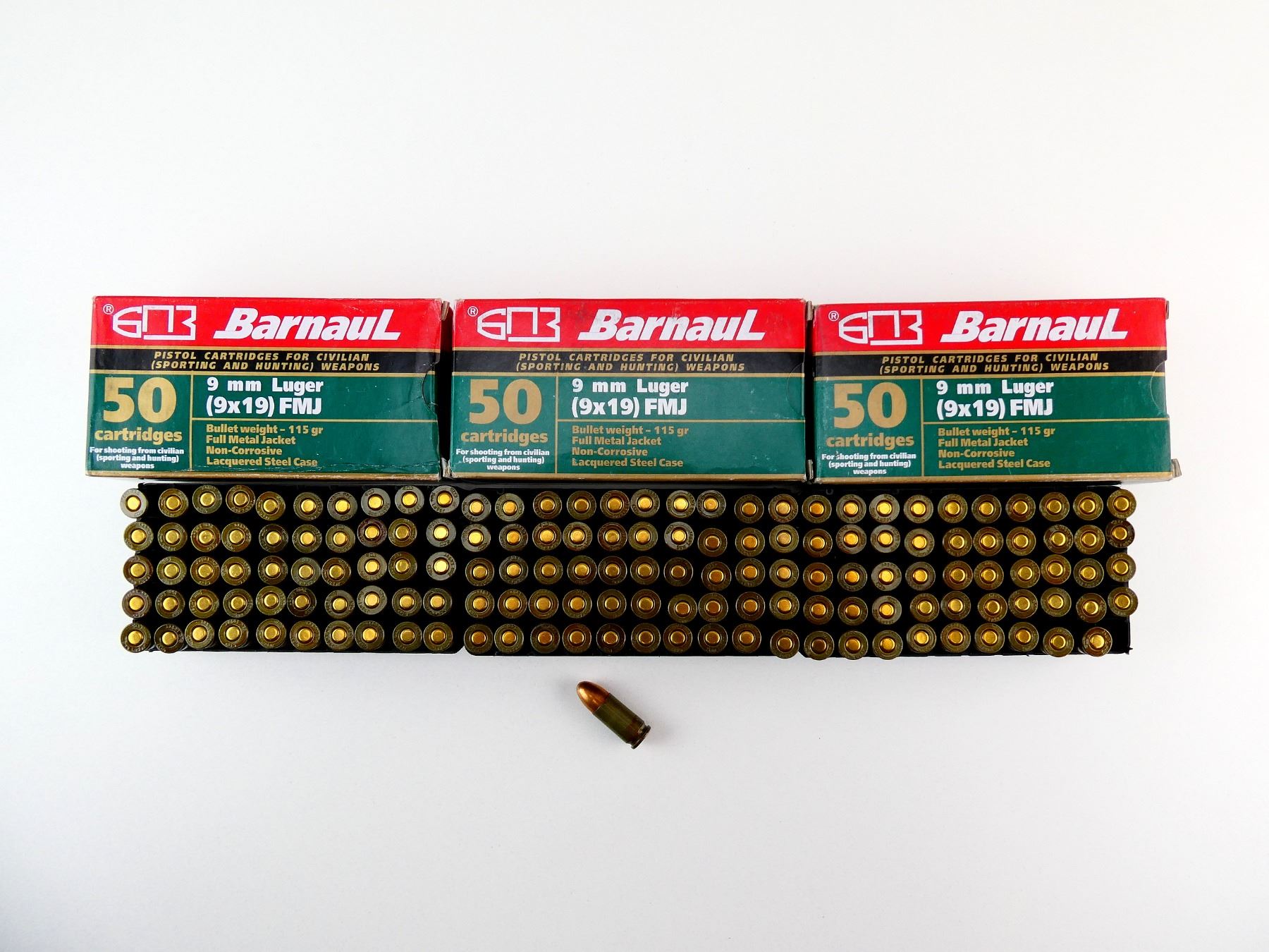 LOT INCLUDES; APPROX. (150) RNDS, 115 GRNS (STATED ON BOXES NOT CONFIRMED), FMJ.