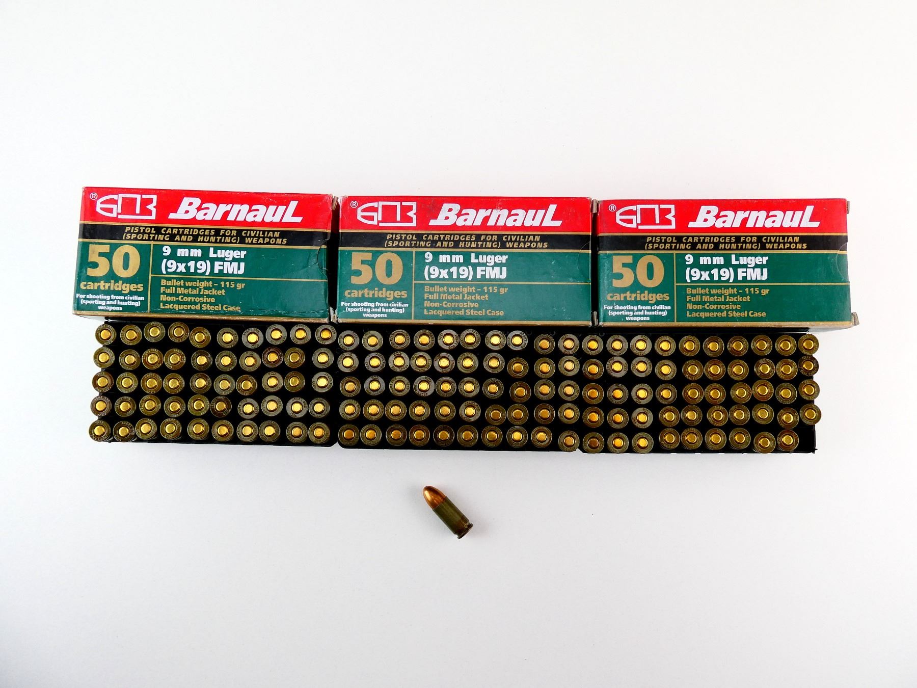 LOT INCLUDES; APPROX. (150) RNDS, 115 GRNS (STATED ON BOXES NOT CONFIRMED), FMJ.
