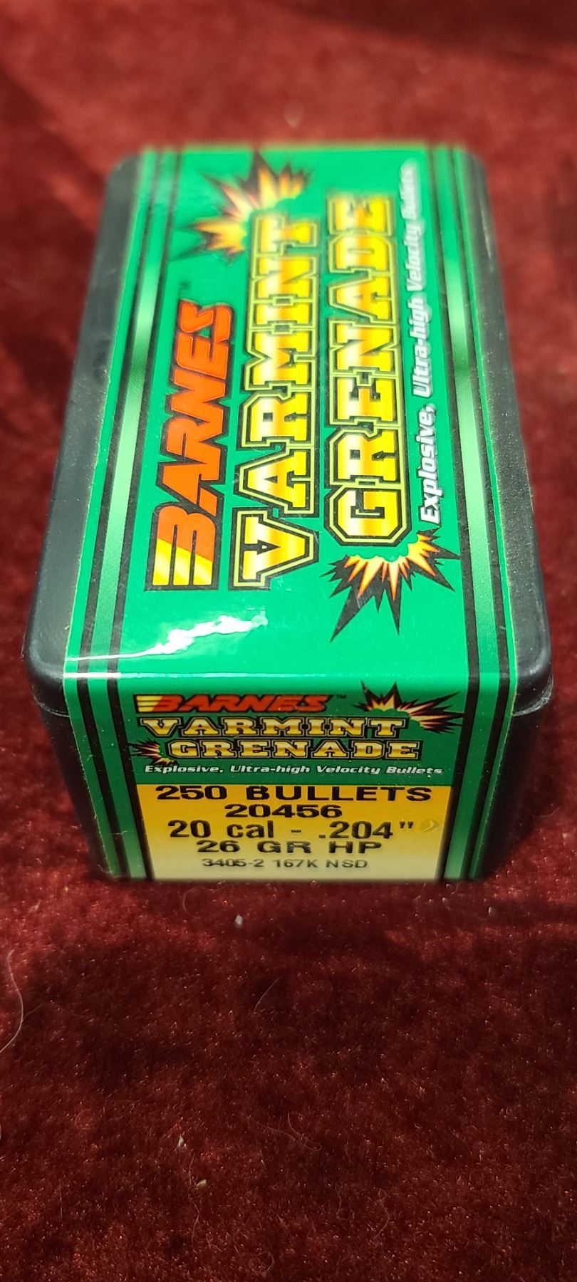 BARNES 20CAL .204 DIA 26GR GR HP QTY 250