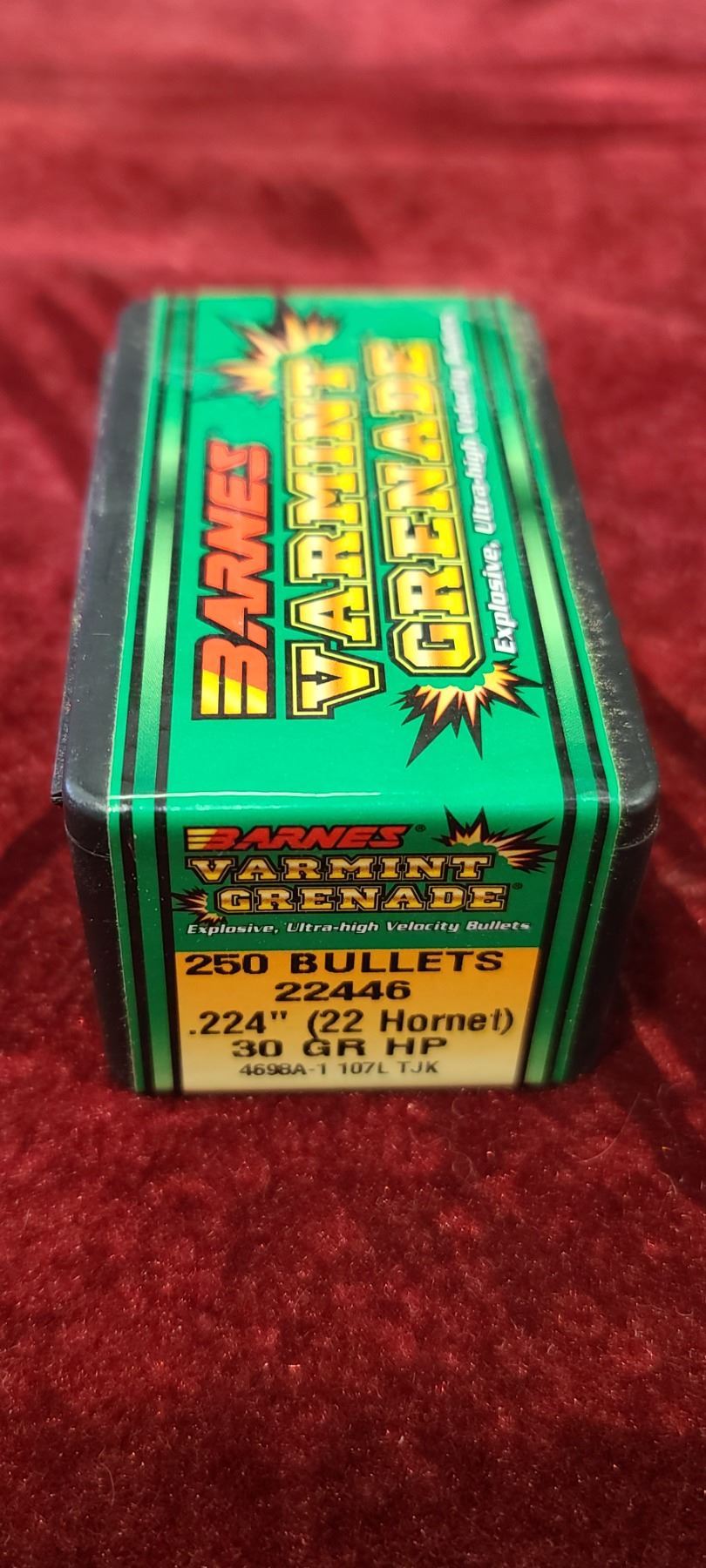 BARNES VARMINT GRENADE .22HORNET 30GR HP BULLETS QTY 250