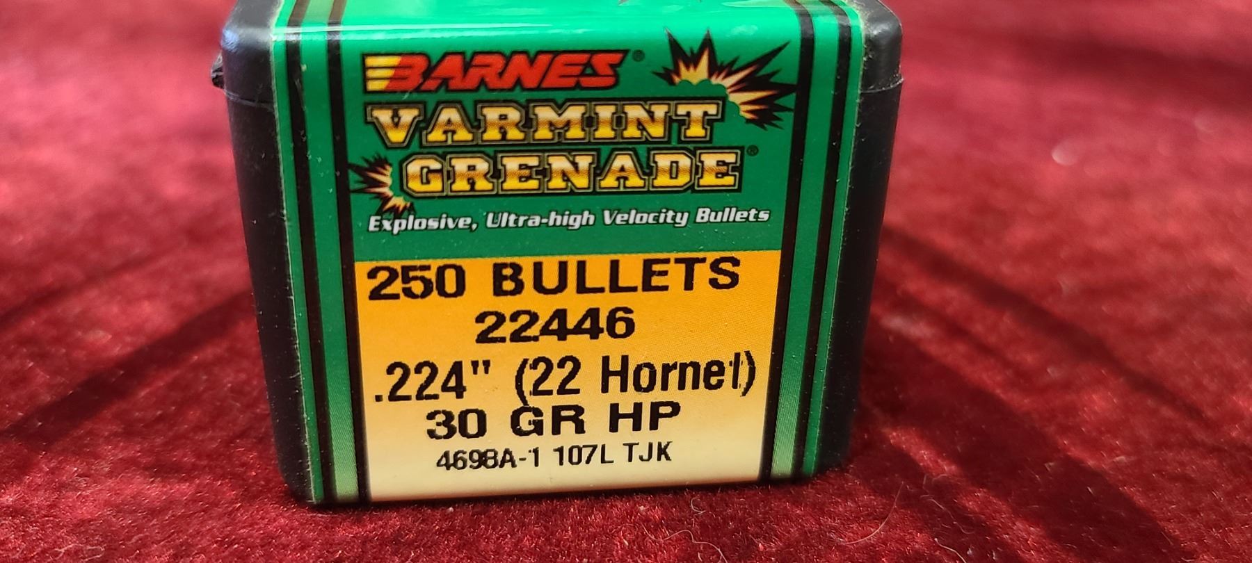 BARNES VARMINT GRENADE .22HORNET 30GR HP BULLETS QTY 250