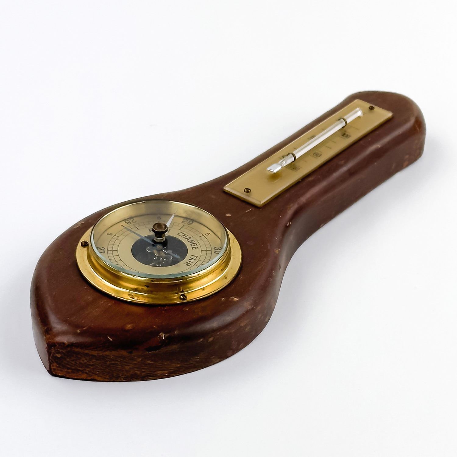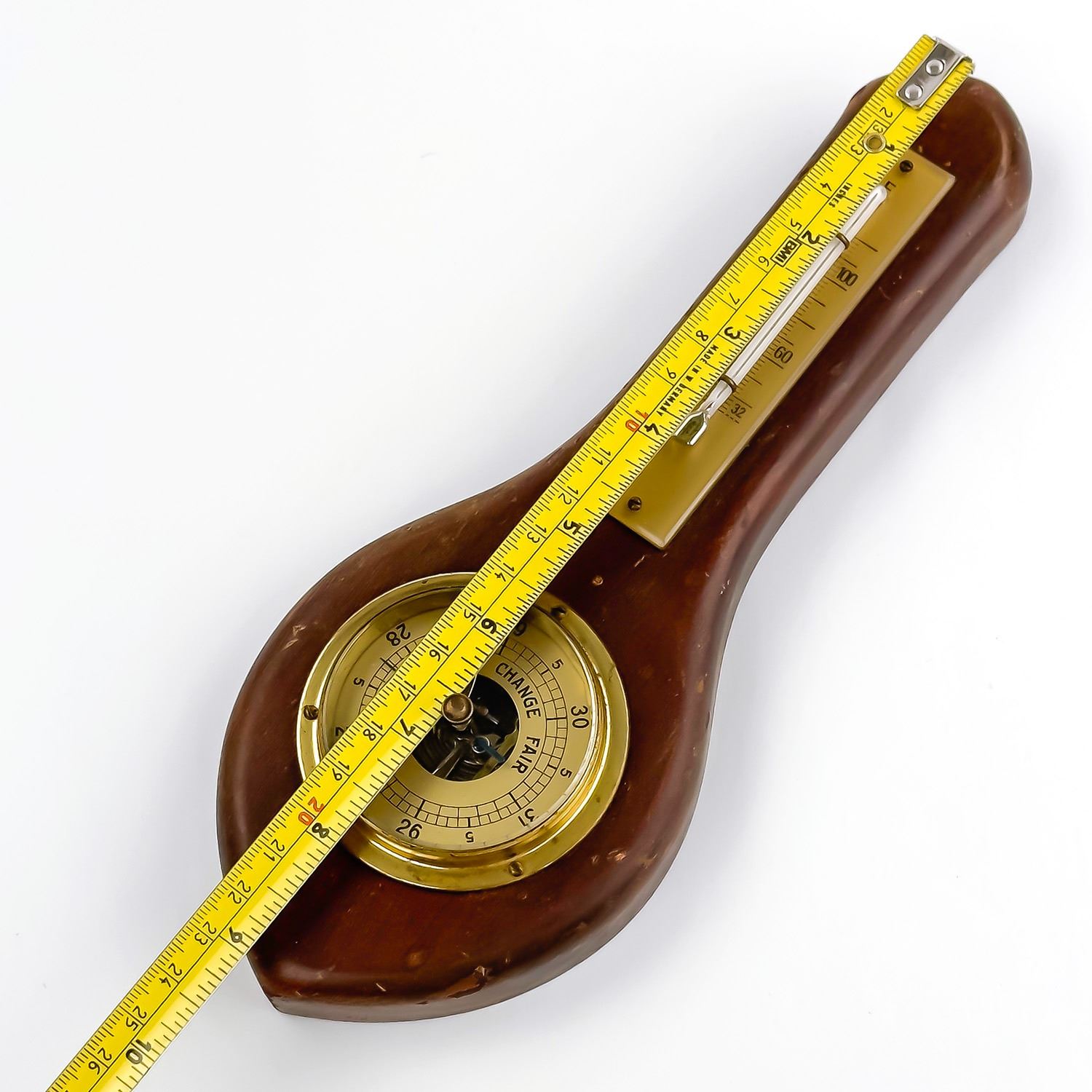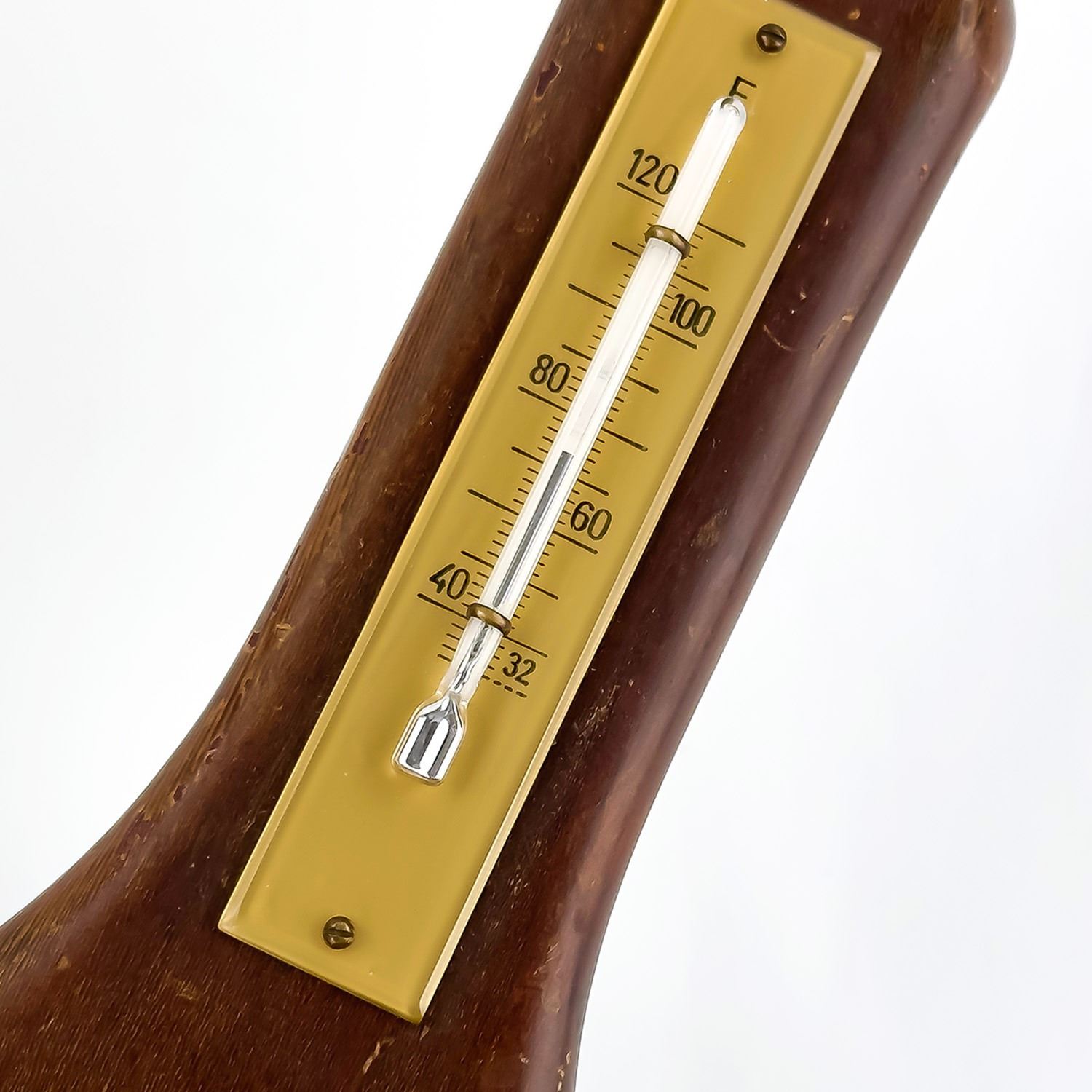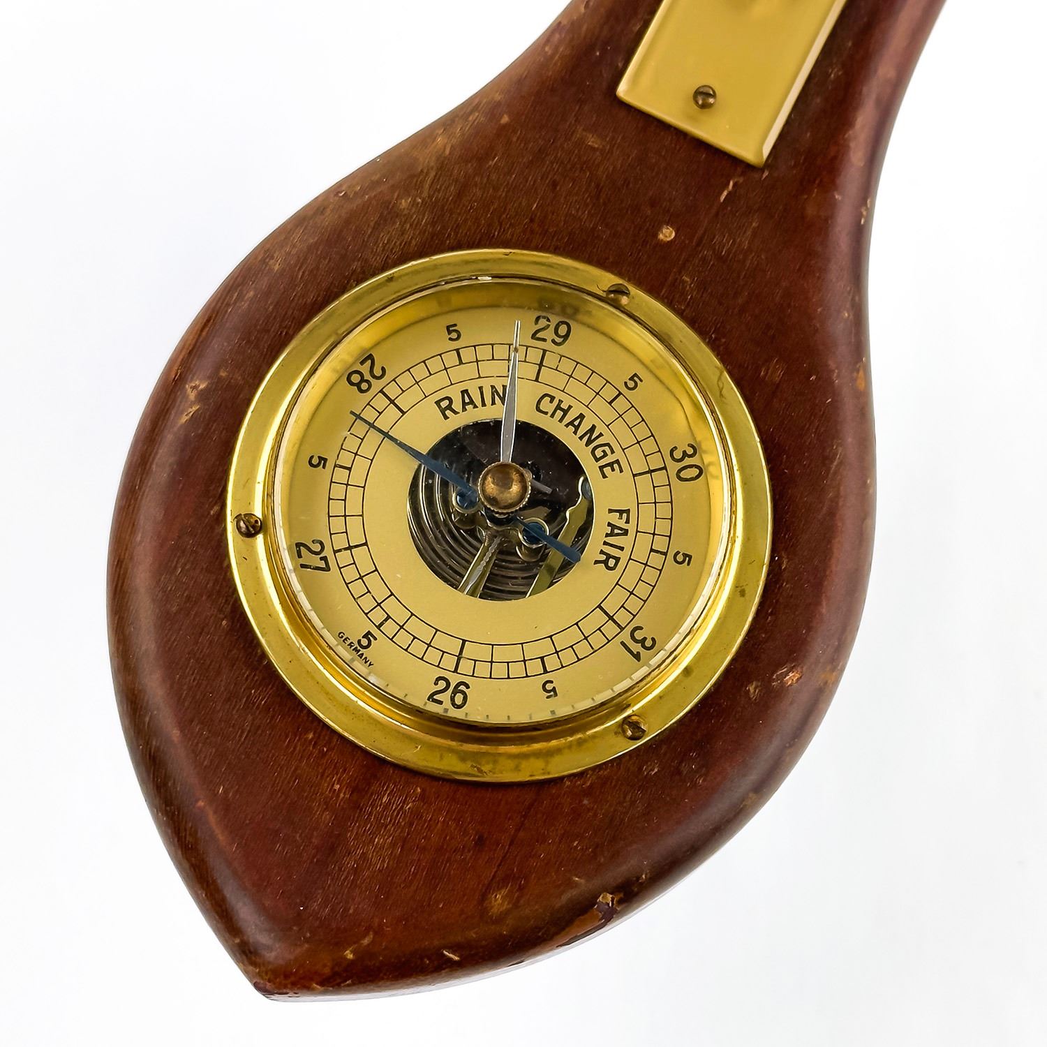 #8381 - VINTAGE WOODEN WOOD WALL WEATHER BAROMETER THERMOMETER - MADE IN GERMANY. NOT FULLY TESTED - MAY NEED ADJUSTMENTS. MEASURES: 9.5” (24 CM) LONG BY 3.75” (9.5 CM) WIDE AND ROUGHLY 1.25” (3 CM) DEEP