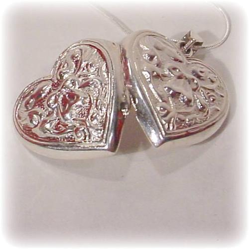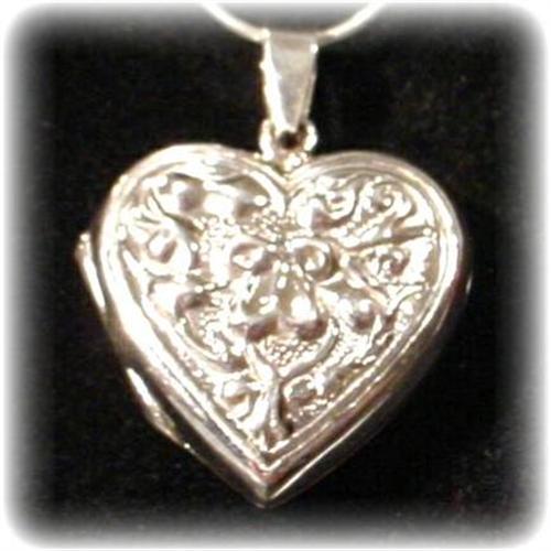 [137267266] HEART BAROQUE LOCKET OF SOLID STERLING SILVER. THIS IS A BEAUTIFUL, UNLINED, DETAILED LOCKET MEASURING APPROX. 1 INCH SQUARE. (CHAIN NOT INCLUDED.)
