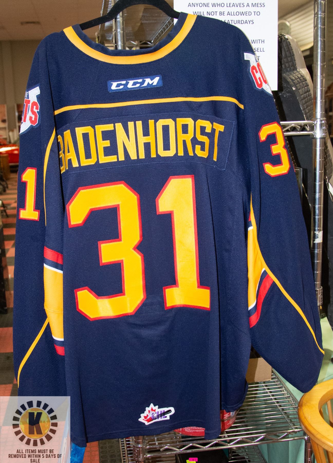 BARRIE COLTS GAME USED JERSEY #31 BADENHORST