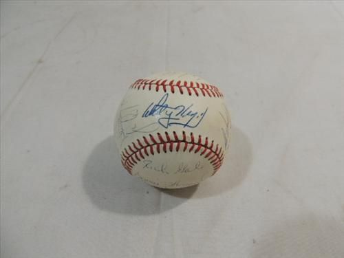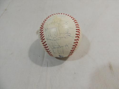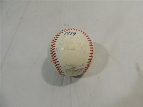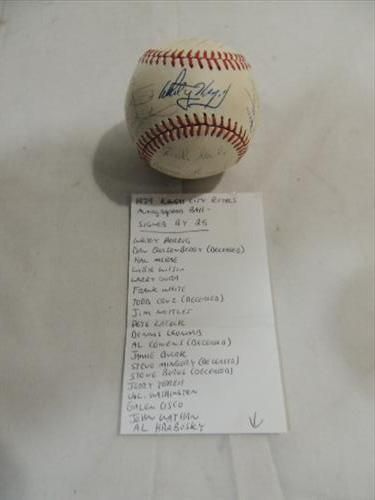 BASEBALL AUTOGRAPHED BY 25: 1979 KC ROYALS: NO COA. WHITEY HERZOG, HAL MCRAE, LARRY GURA, FRANK WHITE, JIM METTLES, JERRY TERRELL AND MORE. AS SHOWN. VIEW PICTURE FOR DETAIL.