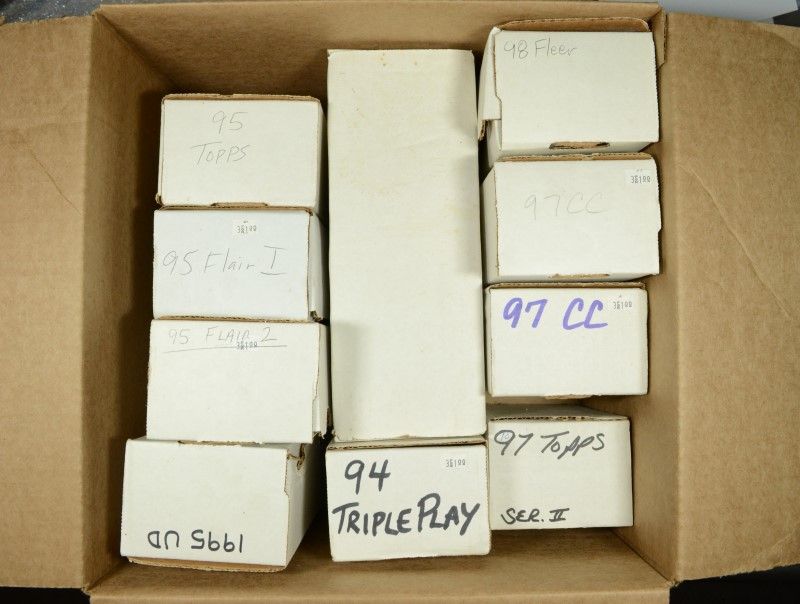 EST $240- $280, MANY STARTER SETS, 95 TOPPS, 95 FLAIR, 95 & 96 UPPER DECK, 94 TRIPLE PLAY, 98 FLEER, 99 TOPPS, 99 FLEER, 97 COLLECTORS CHOICE, 97 TOPPS, ALL NICE CONDITION