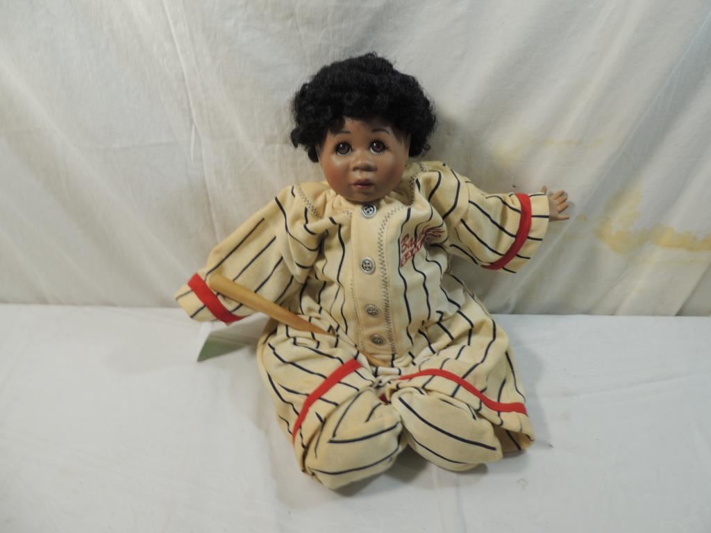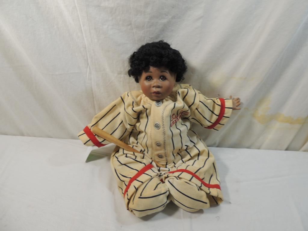 BASEBALL PLAYER BABY DOLL, COLLECTIBLE DOLL, DOLL, GREAT CONDITION, FROM PRIVATE DOLL COLLECTION, UNIQUE DOLL, AS SHOWN SEE PHOTO FOR MORE DETAILS.