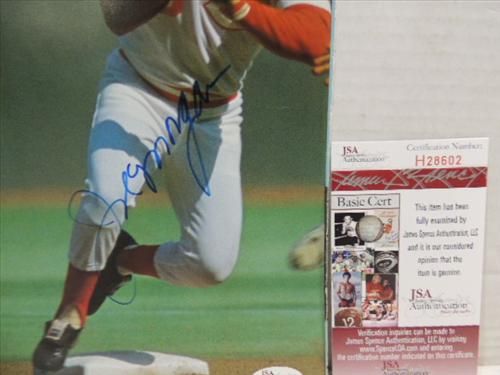 BASEBALL PRINT AUTOGRAPHED BY JOE MORGAN COA JSA #H28602. 9X12. AS SHOWN. VIEW PICTURE FOR DETAIL.