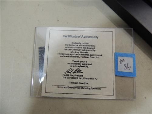 BASEBALL YANKEE HAT AUTOGRAPH MICKEY MANTLE COA. INLCUDES COA FROM SCORE BOARD INC. AS SHOWN. VIEW PICTURE FOR DETAIL. PLEASE BE ADVISED, AND INFORMED REGARDING SIGNATURES OR AUTOGRAPHS THAT WE SELL AT AUCTION: WE ARE NOT AUTHENTICATORS, AND WE DO NOT AUTHENTICATE, OR VALIDATE ANY AUTOGRAPHS OR SIGNATURES THAT WE OFFER AT AUCTION. SOME AUTOGRAPHS OR SIGNATURES MAY COME WITH AN AUTHENTICATION FROM ANY ONE OF LITERALLY HUNDREDS OF AUTHENTICATORS ACROSS THE COUNTRY, AND AROUND THE WORLD. WE DO NOT ENDORSE ANY AUTHENTICATOR, NOR DO WE GUARANTEE THAT ANY AUTOGRAPH OR SIGNATURE IS AUTHENTIC, OR THAT IT WILL PASS AUTHENTICATION BY ANY AUTHENTICATOR. ALL AUTOGRAPHS OR SIGNATURES ARE SOLD