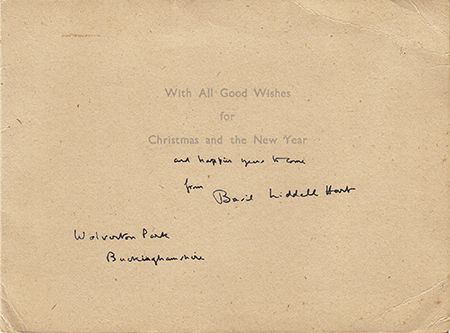 (1895 - 1970) British soldier and military historian. D.S. 4pp. 12mo., Wolverton Park [n.y.], a Christmas card with a few lines added in his hand. Fine.