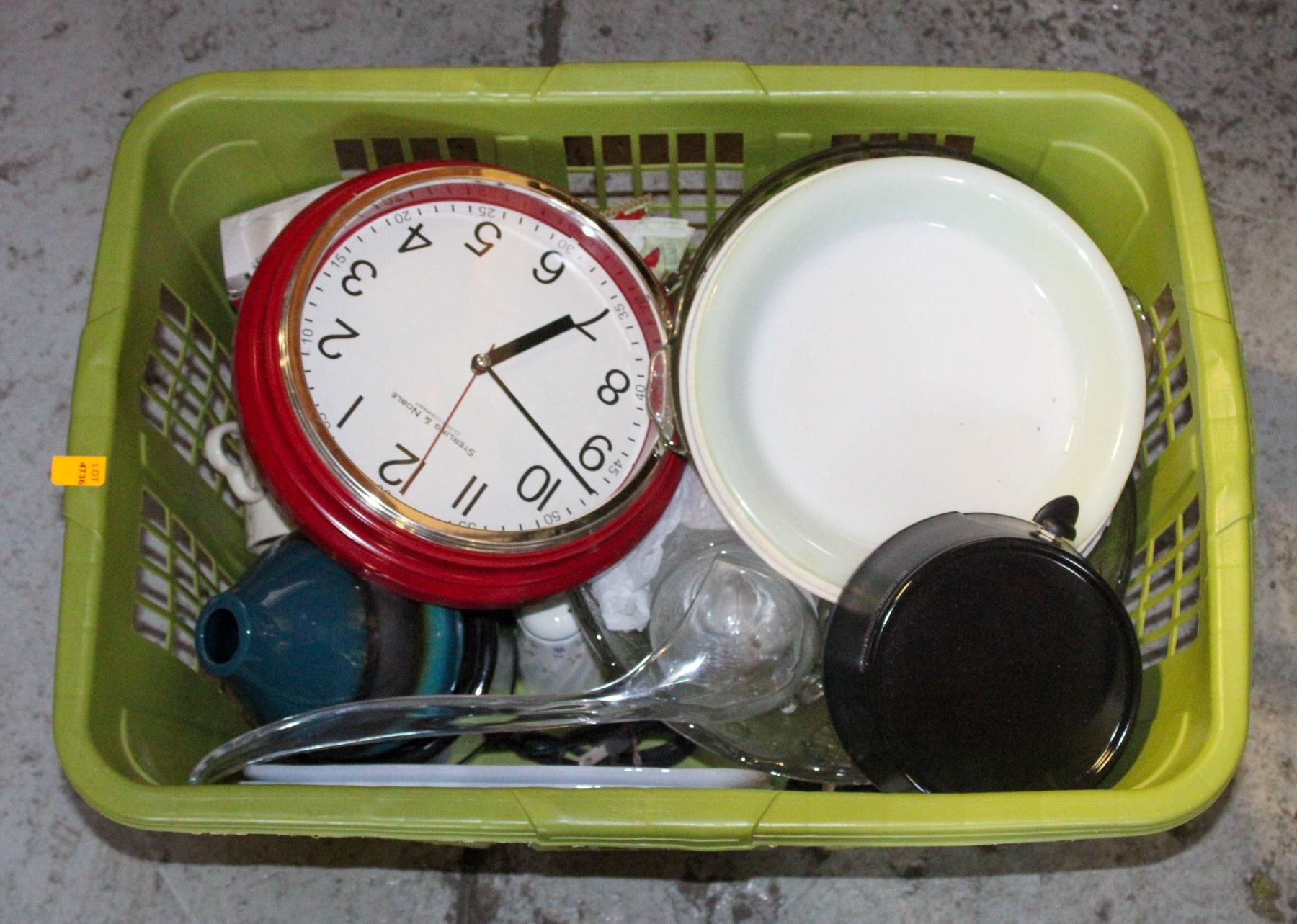 BASKET KITCHEN ITEMS (INCL. VINTAGE PYREX)