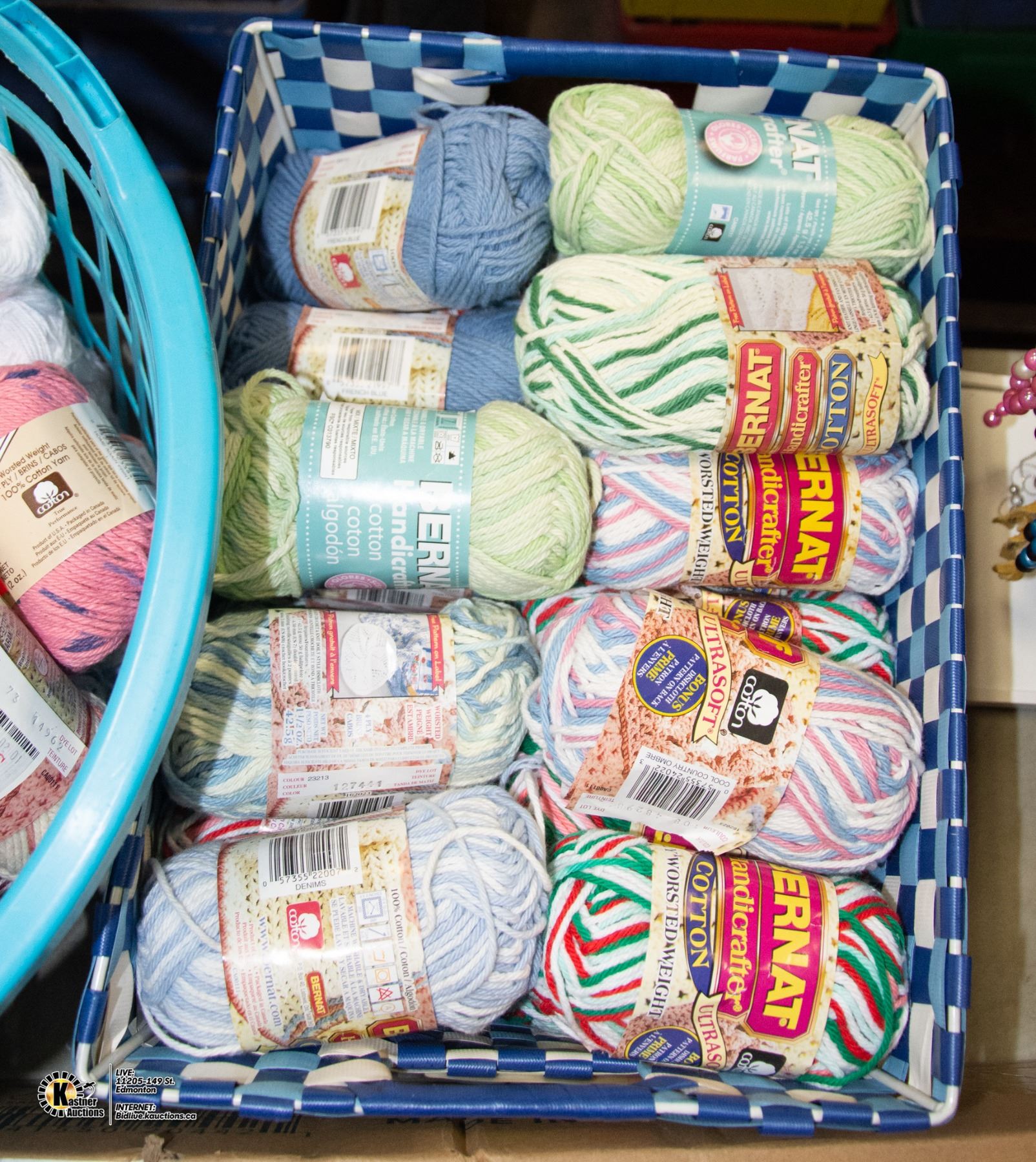BASKET OF 29 ASSORTED SMALL SKEINS YARN
