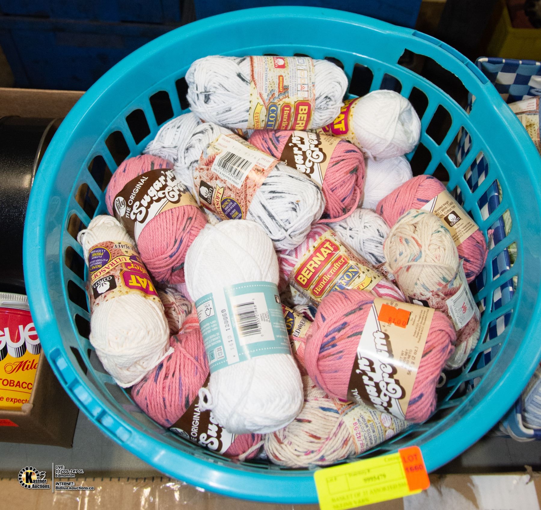 BASKET OF 35 ASSORTED SMALL SKEINS YARN