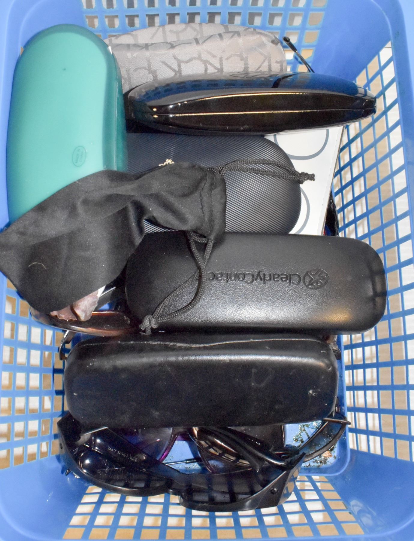 BASKET OF ASSORTED SUNGLASSES & EYEWEAR