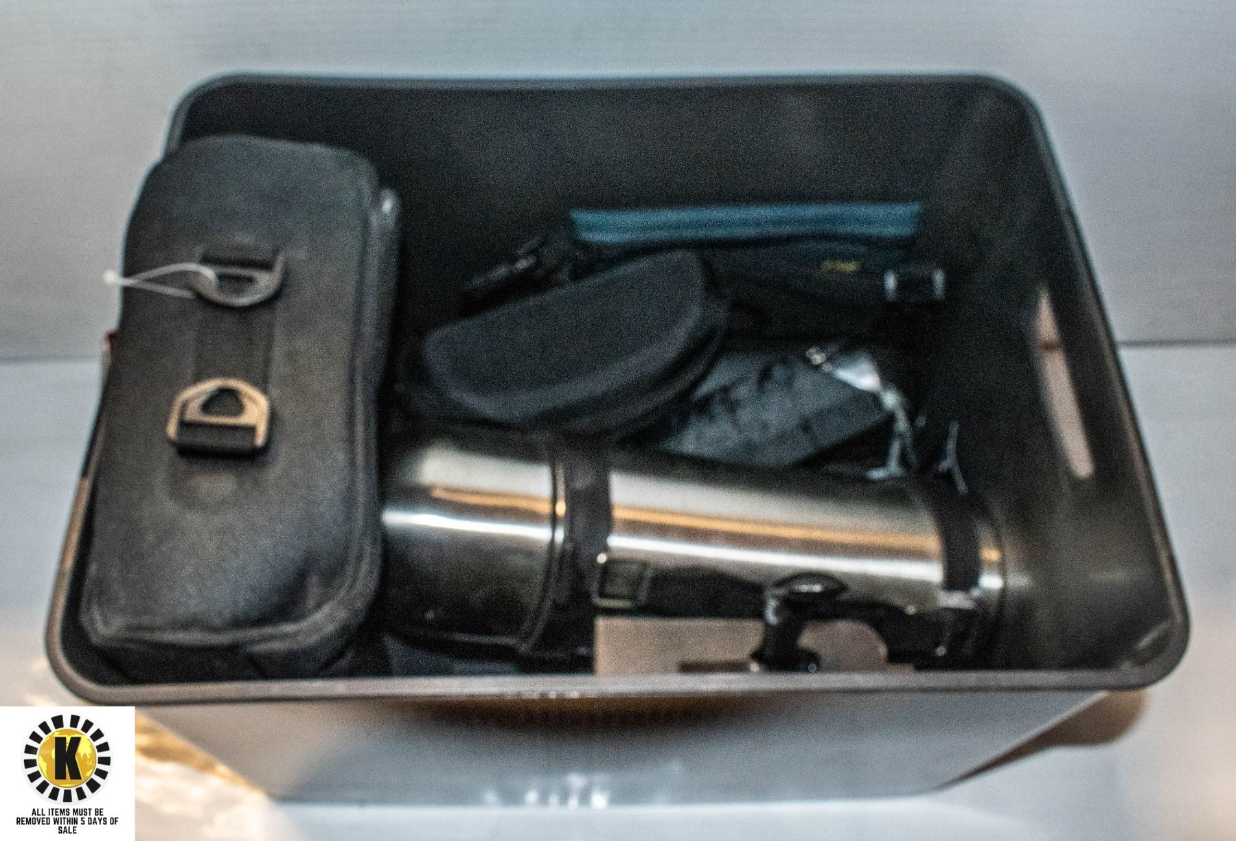 BASKET OF NEW MISC. HOUSEWARES; THERMOS, UMBRELLA