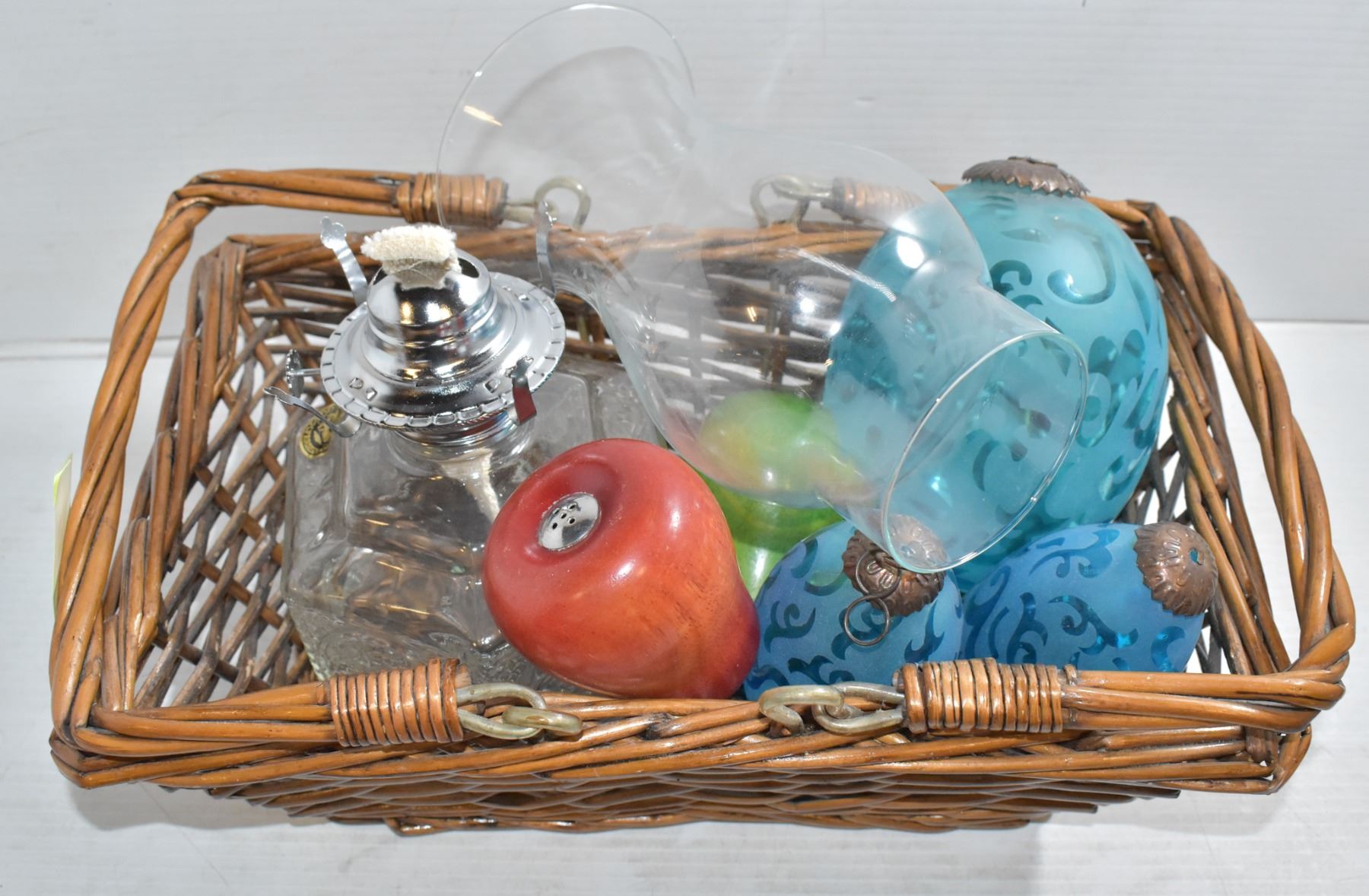 BASKET OF OIL LAMP AND MORE