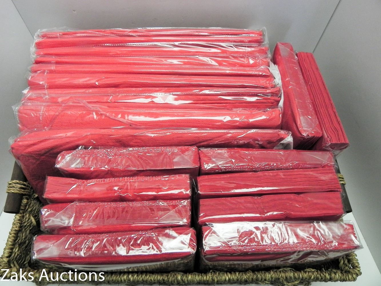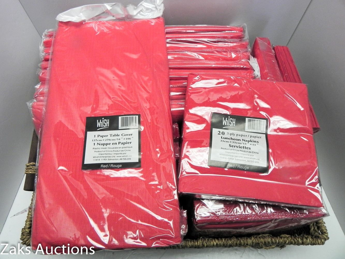 BASKET OF RED - 10 PAPER TABLE CLOTHS AND 10 PKGS OF RED NAPKINS
