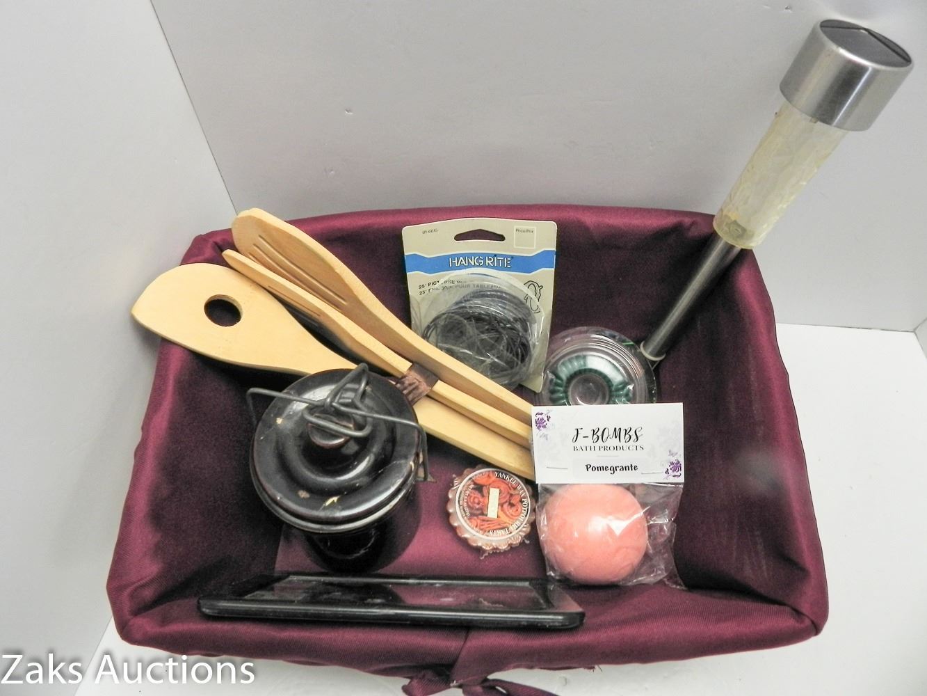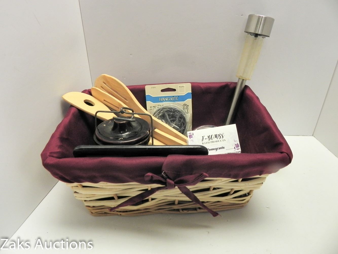 BASKET OF VARIOUS HOUSEHOLD GOODS, KITCHEN