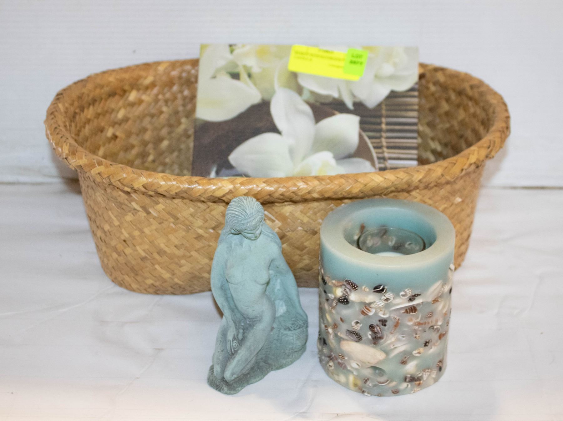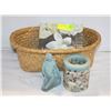 BASKET WITH BATHROOM PICTURE, CANDLE &