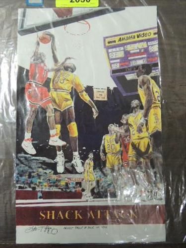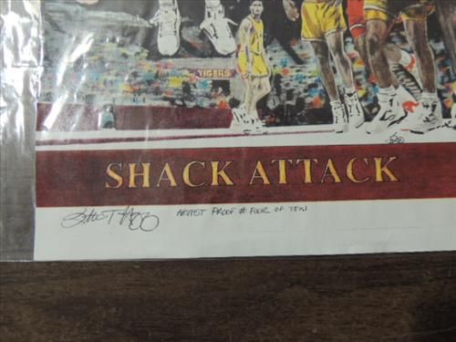 BASKETBALL LITHOGRAPH SHAQUILLE O'NEIL ARTIST PROOF & SIGNED. 4 OF 10. 8.5X11. SHACK ATTACK. AS SHOWN. VIEW PICTURE FOR DETAIL.