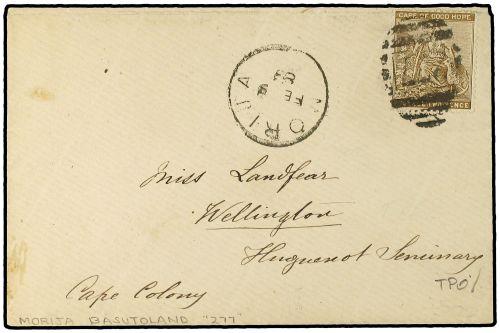 1888 Envelope to Wellington, Cape Colony, franked CGH 2d. tied by MORIJA datestamp. On reverse, Aliwai North transit cds.