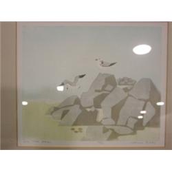 Bates, Pearce "On the Rocks" color lithograph numbered 40/100. Number in lower left and signed in lower right. 16.5" x 18" framed.