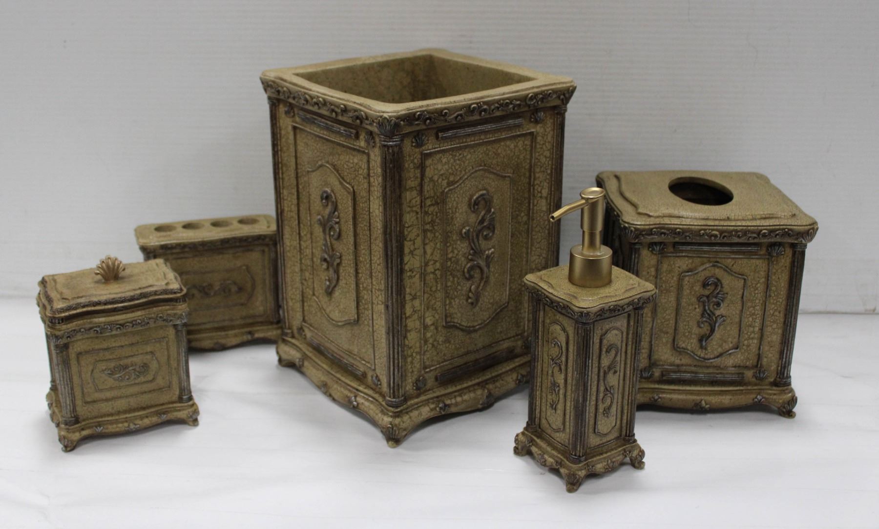 BATH VANITY SET BROWN GOLD TOP 5 PC