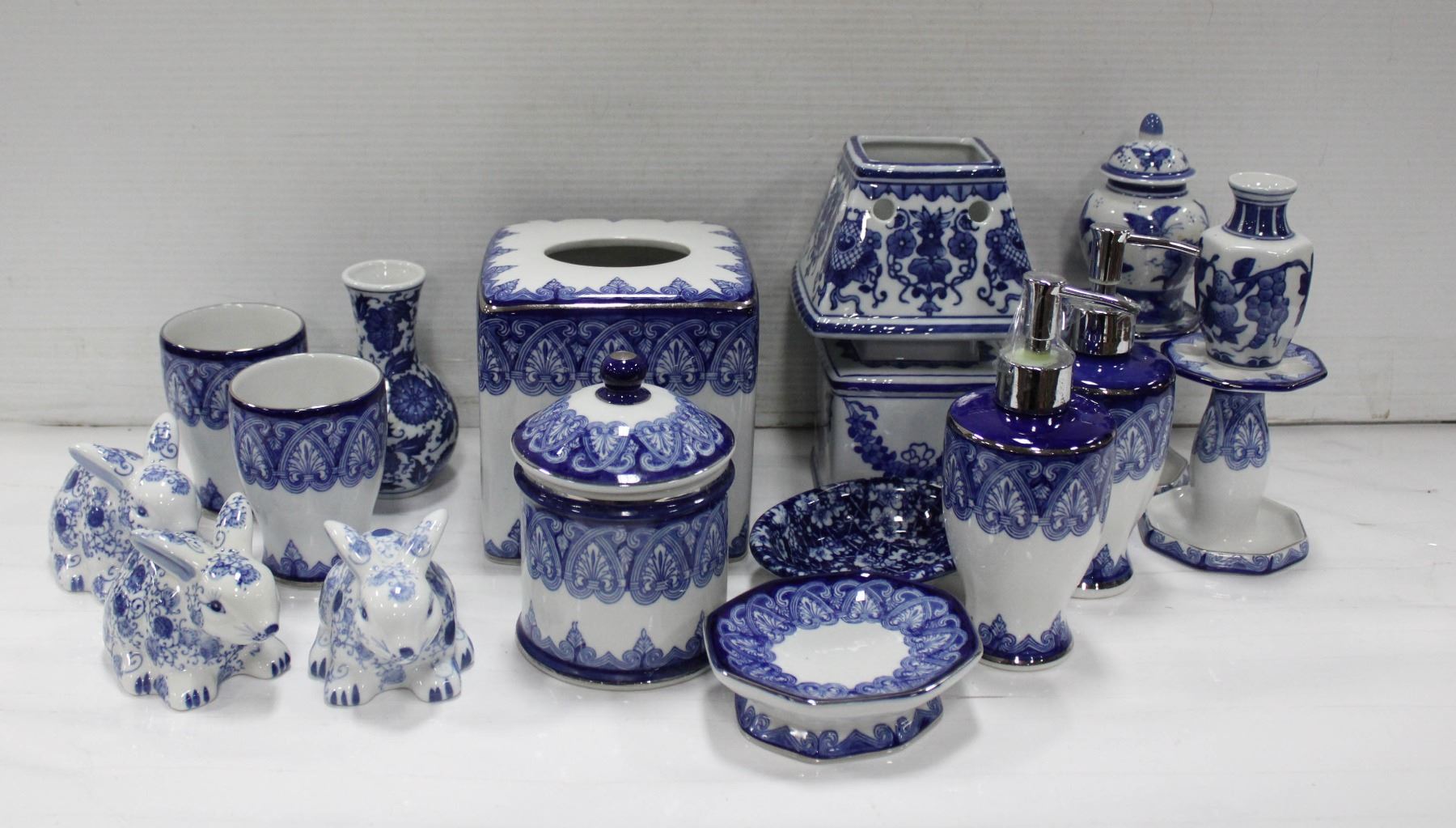 BATH VANITY SET COBALT FLORAL 17 PCS