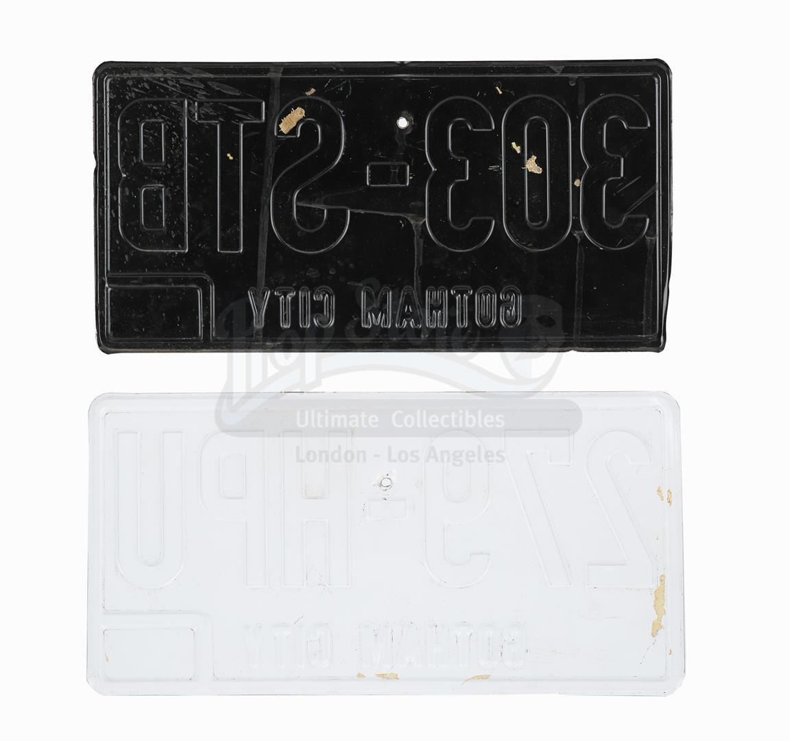 The Joker's (Jack Nicholson) getaway car licence plate from Tim Burton's superhero film Batman. This black plate was seen on the rear of the Joker's getaway car after he ambushed a Gotham City press conference. This lot was originally part of a Batman prop exhibition displayed in the Way In department at Harrods.