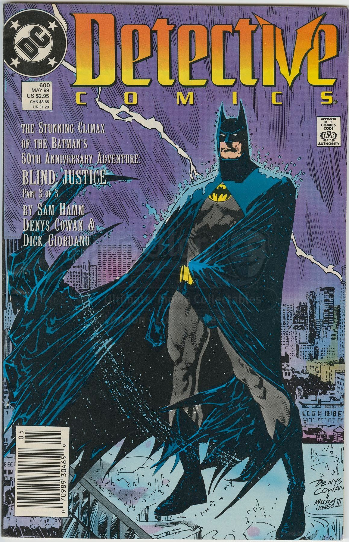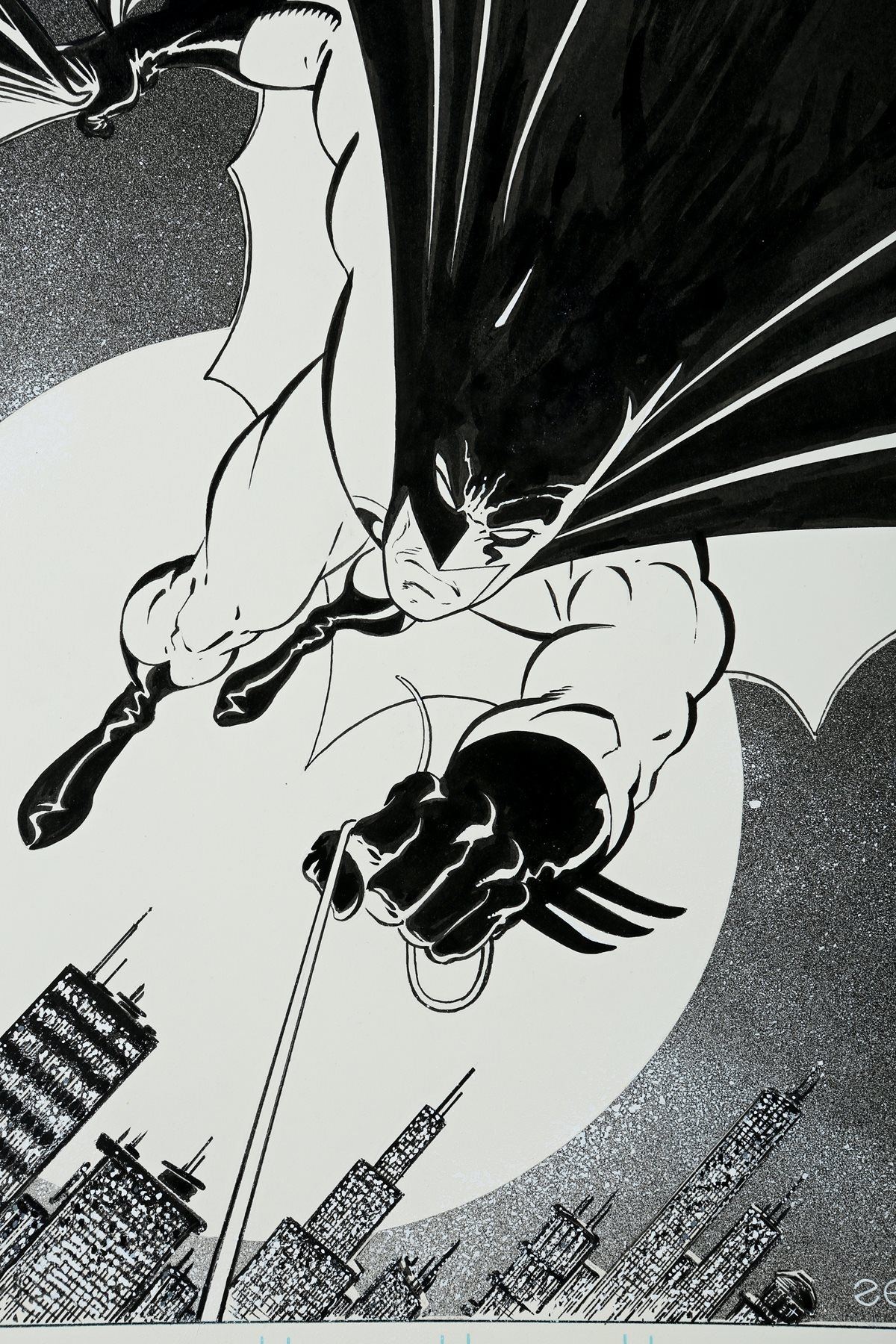 Included with the lot is a reference copy of Detective Comics #600, the comic book in which this art was originally published, along with a copy of the promotional postcard from the Dynamic Lines exhibit. The artwork is in very good condition. Dimensions: 42 cm x 28 cm (16 ½” x 11”)