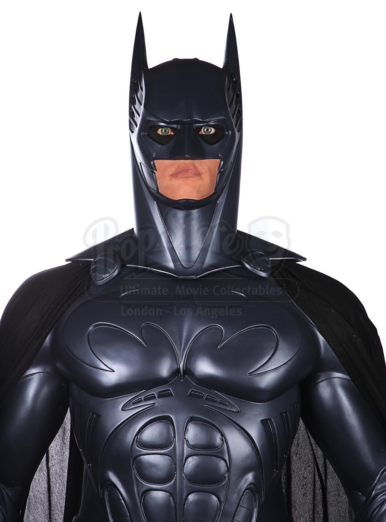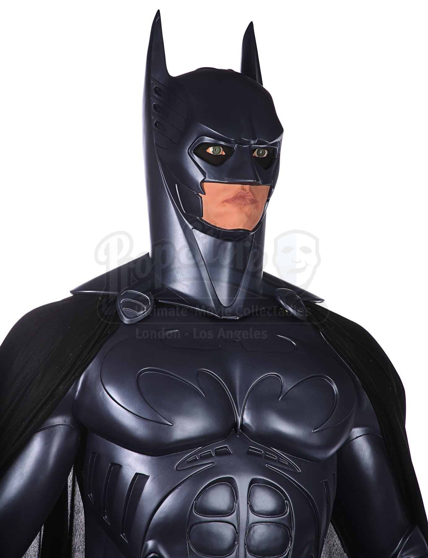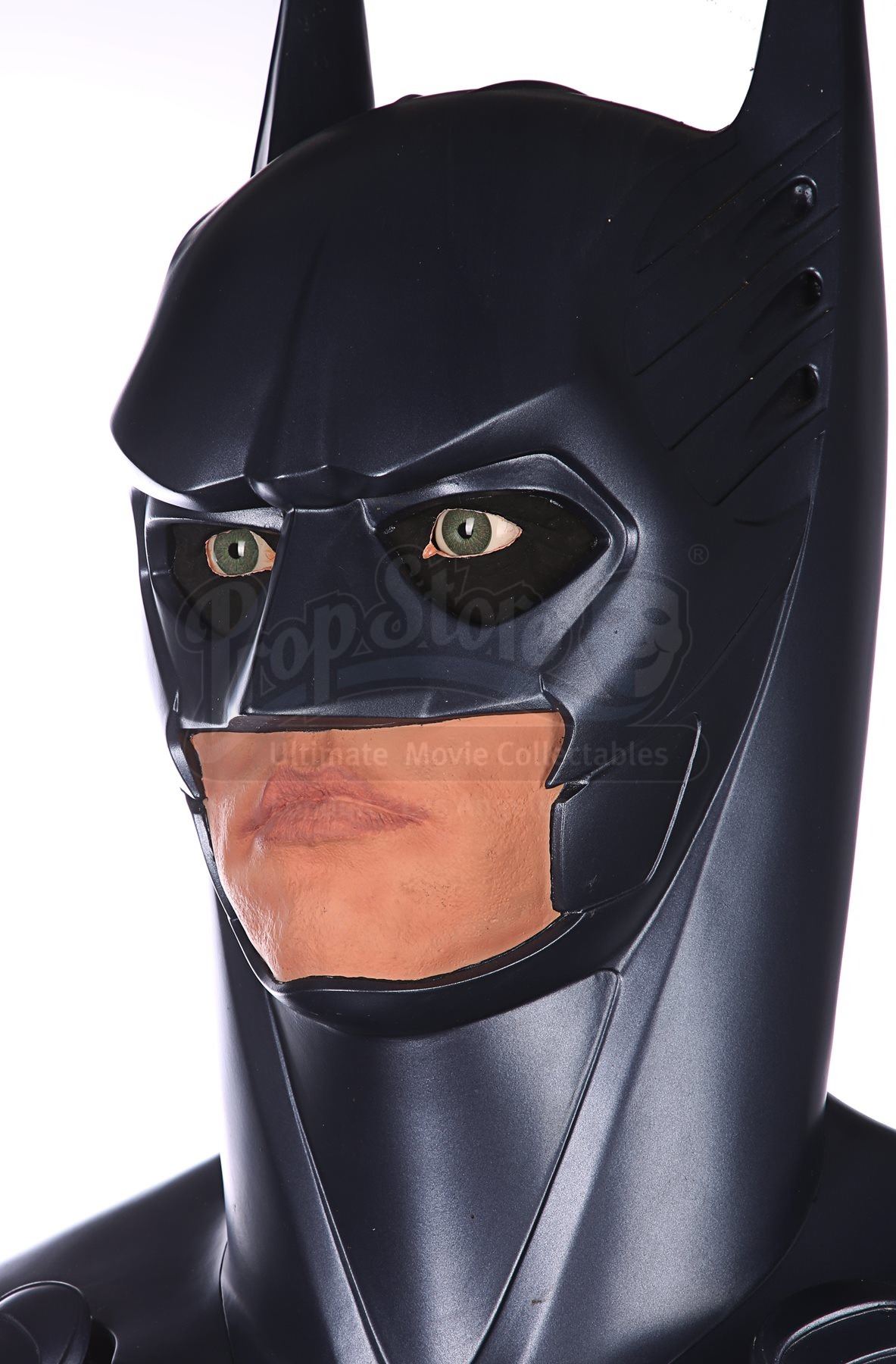 A full-scale, limited-edition, licensed replica Batman statue sold during the release of Joel Schumacher's superhero sequel Batman Forever. Dressed in the muscular Bat-Suit, the caped crusader here features the likeness of actor Val Kilmer behind the mask.