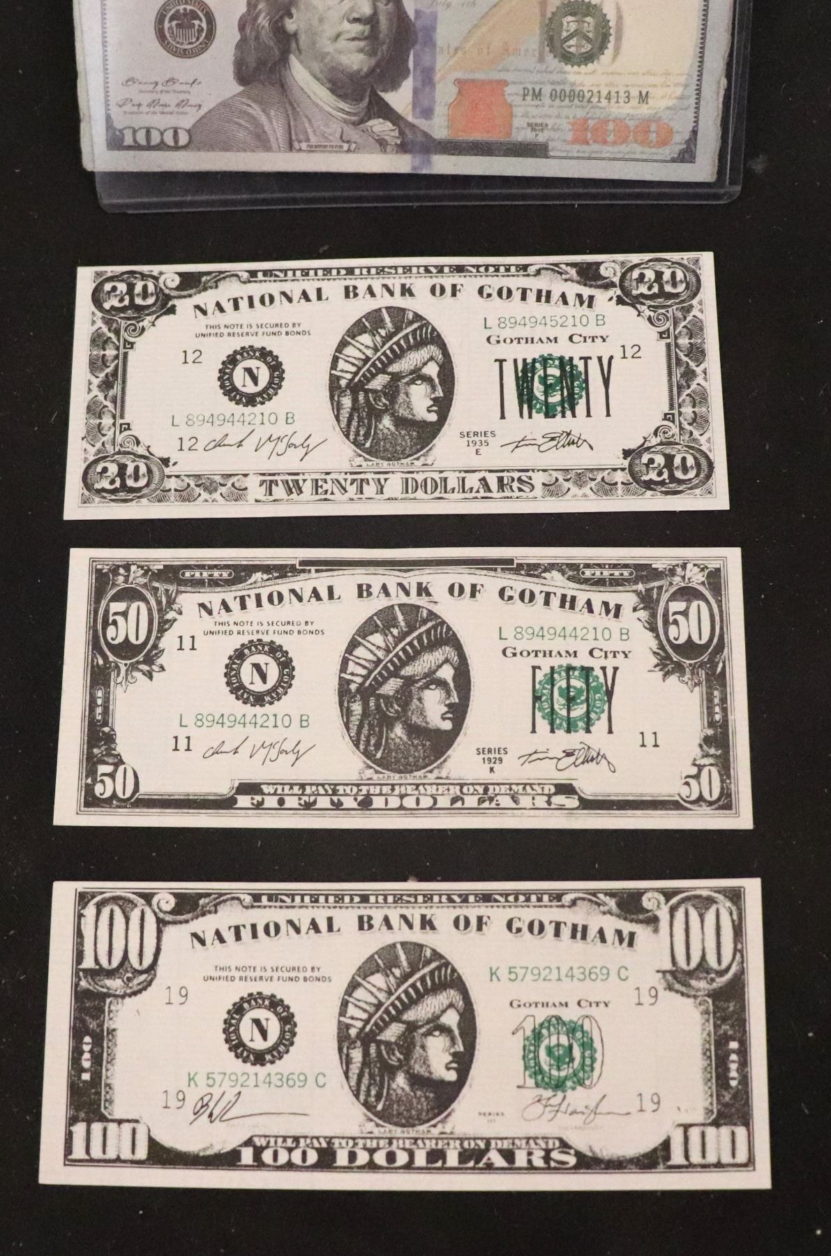 BATMAN FOREVER $20 $50 AND $100 BILLS LOT OF 3!