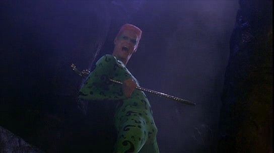 This is a Screen Used Hero cane used by Jim Carey as THE RIDDLER in BATMAN FOREVER!