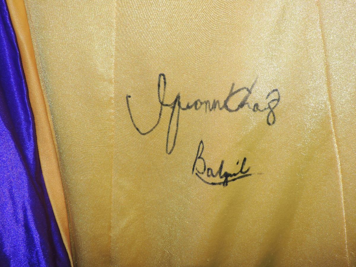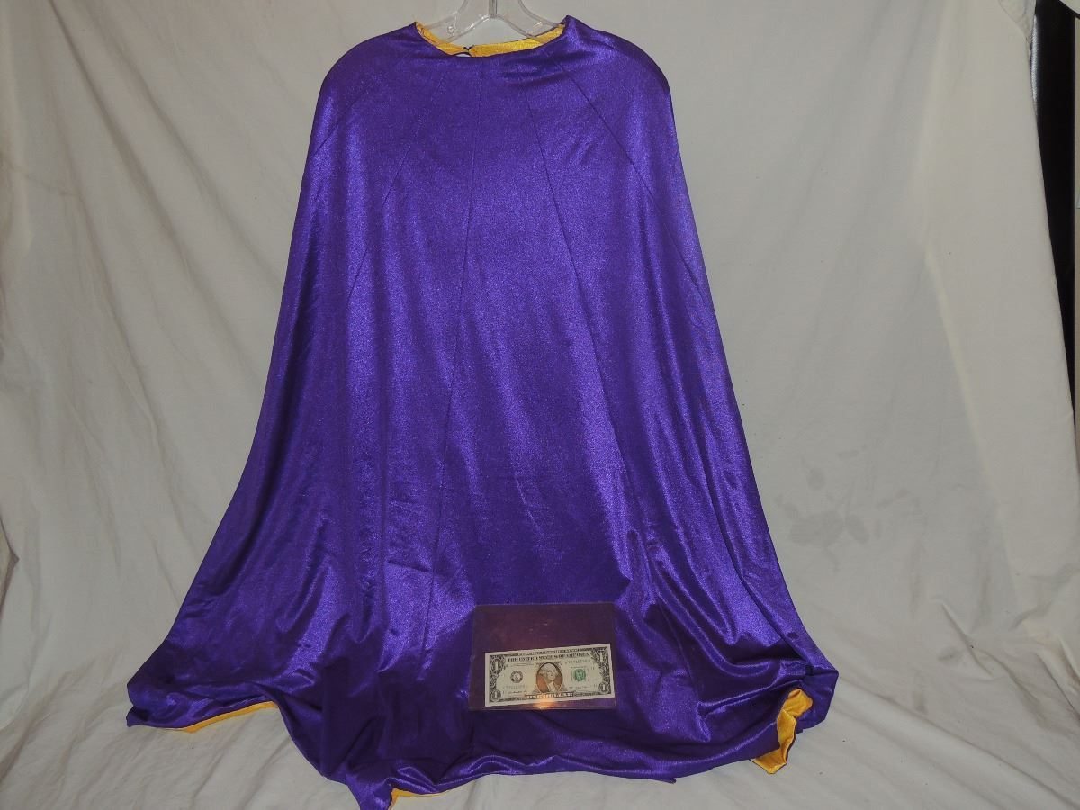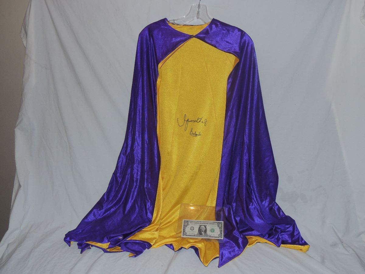 This is the BAT GIRL cape screen worn in RETURN TO THE BAT CAVE. Signed by Yvonne Craig who is now deceased.