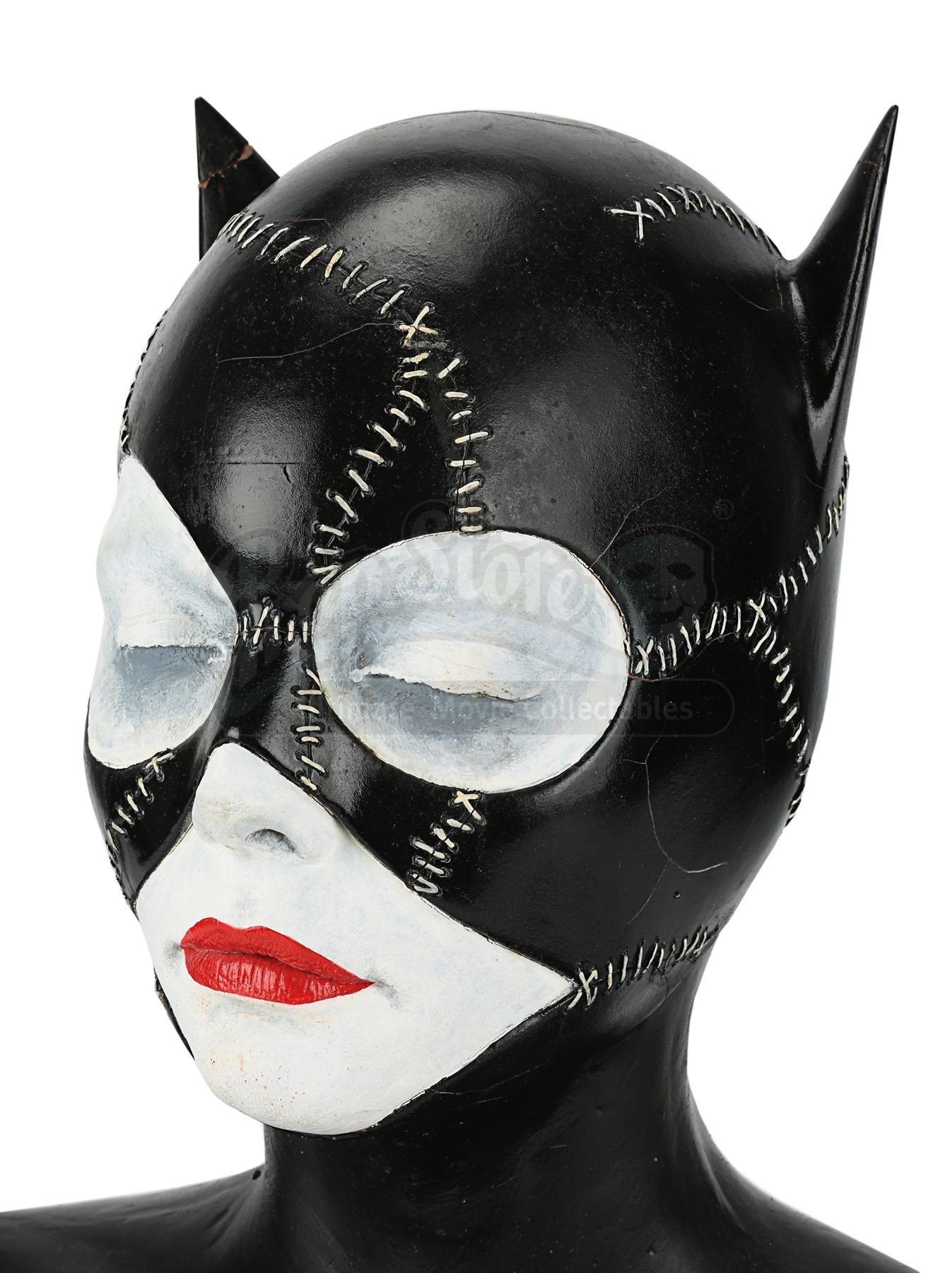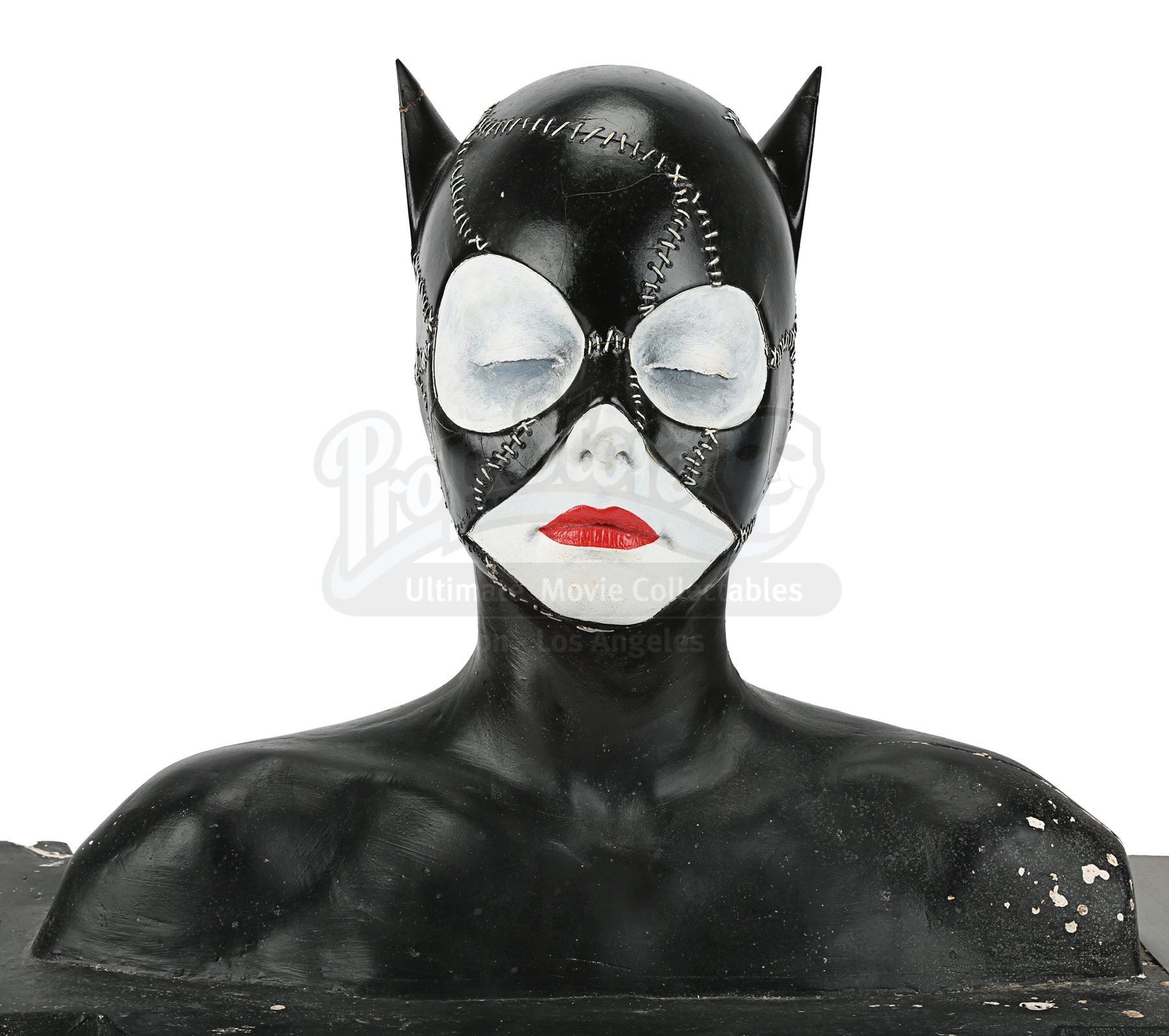 A make-up test bust of Catwoman (Michelle Pfeiffer), made for Tim Burton’s superhero sequel Batman Returns. Paint busts are used by make-up artists to test the effects of make-up and develop aesthetic concepts, ensuring accuracy and saving time on set. The film was nominated for several awards, including a Saturn Award, for its costume designs.