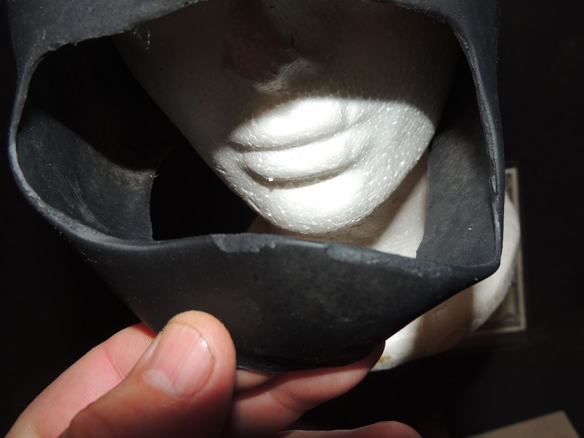 This is a production made BATMAN suit cowl from THE DARK KNIGHT! I am told this is the cowl seen on his lap in the office.