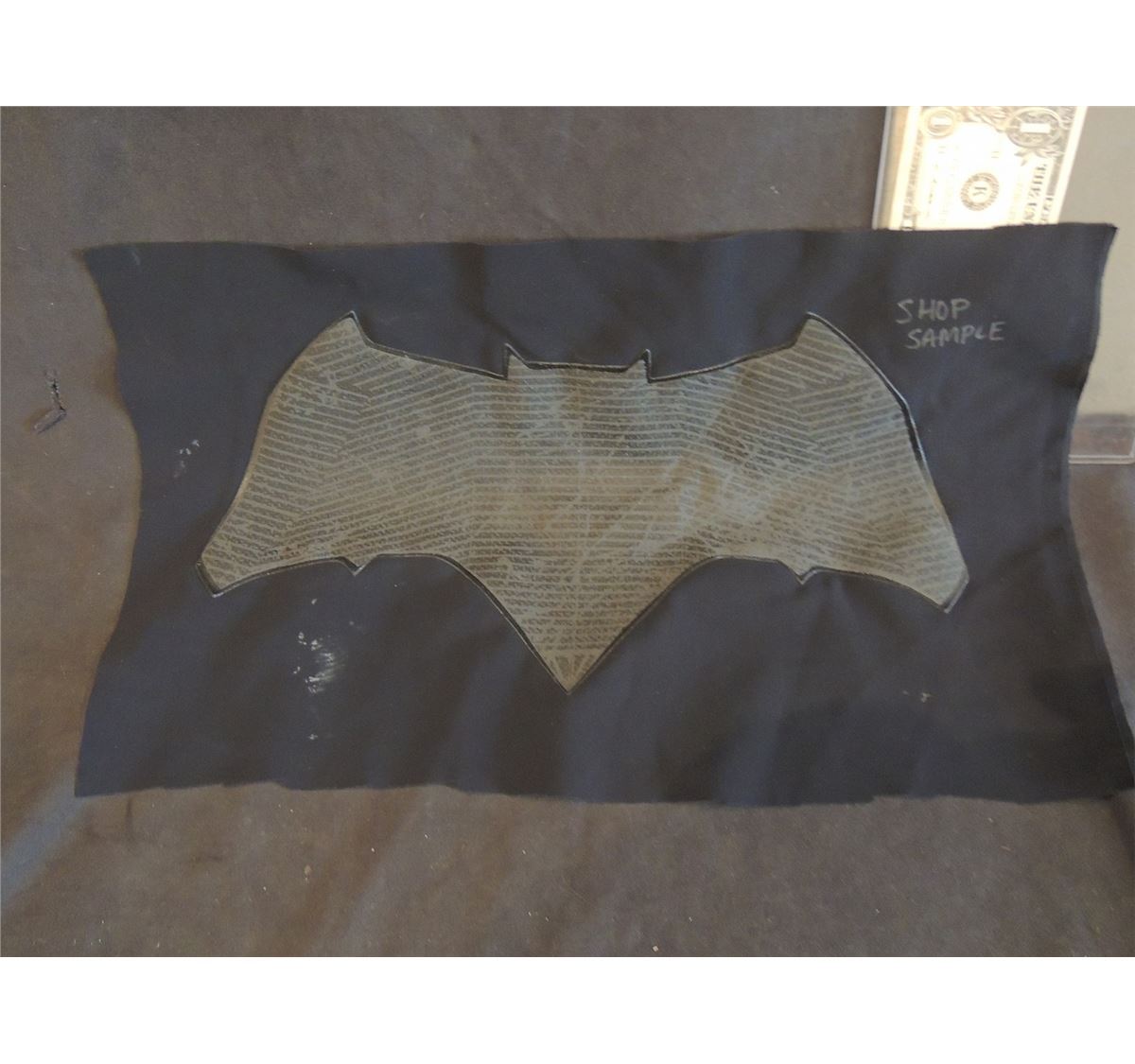 This is a test chest glyph from BATMAN VS SUPERMAN DAWN OF JUSTICE! These were produced during production to test glyphs, materials, and colors.