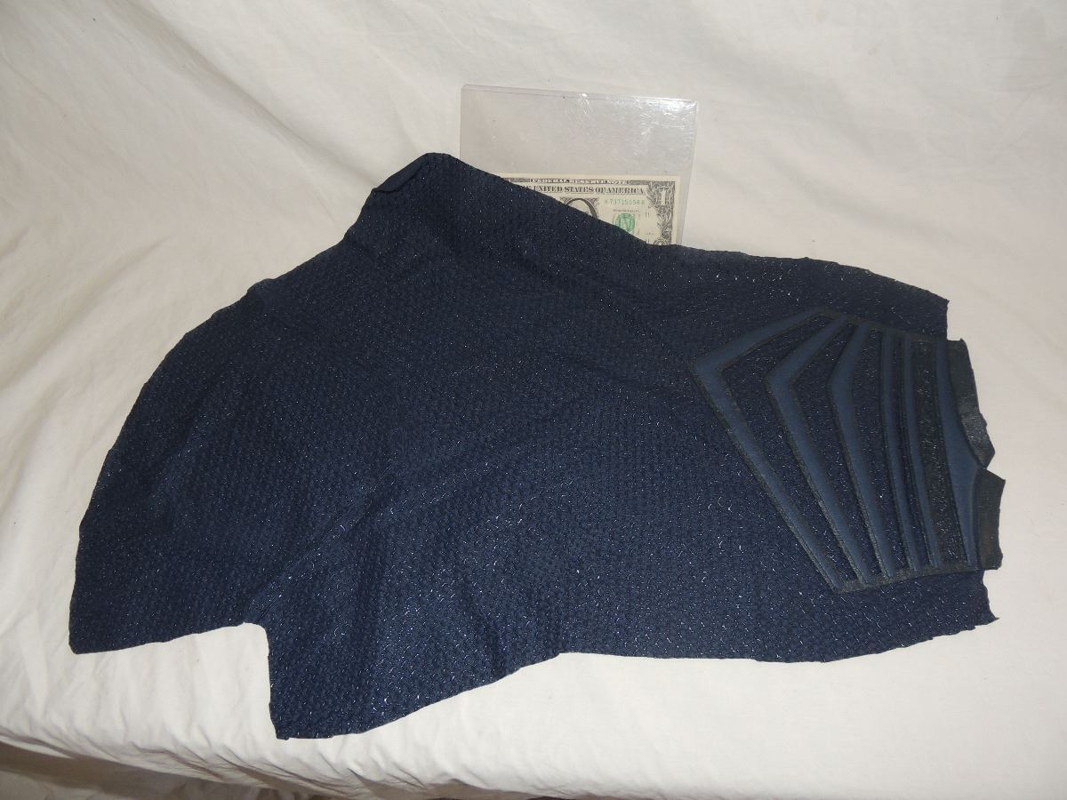This is a complete SUPERMAN suit sleeve with glyphs from DAWN OF JUSTICE! Cut to sew on suit but never used.