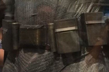 4] This was broken on set, forcing its replacement. The other belt extension with the female velcro was torn off and is now lost.