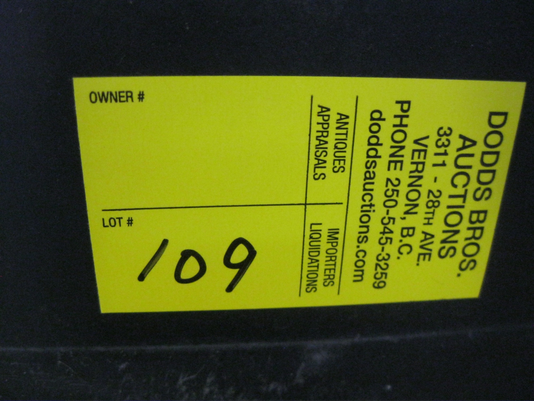 Attendance at the auction preview, or removal of purchased lots by purchaser/bidders and guests is done at their sole risk. Dodds Auction assumes no risk or liability, statutory, common law or otherwise whatsoever for the safety of those attending at the auction premises.