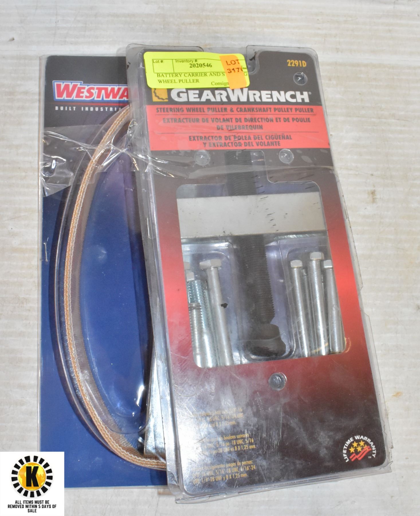 BRAND NEW BATTERY CARRIER AND STEERING WHEEL PULLER
