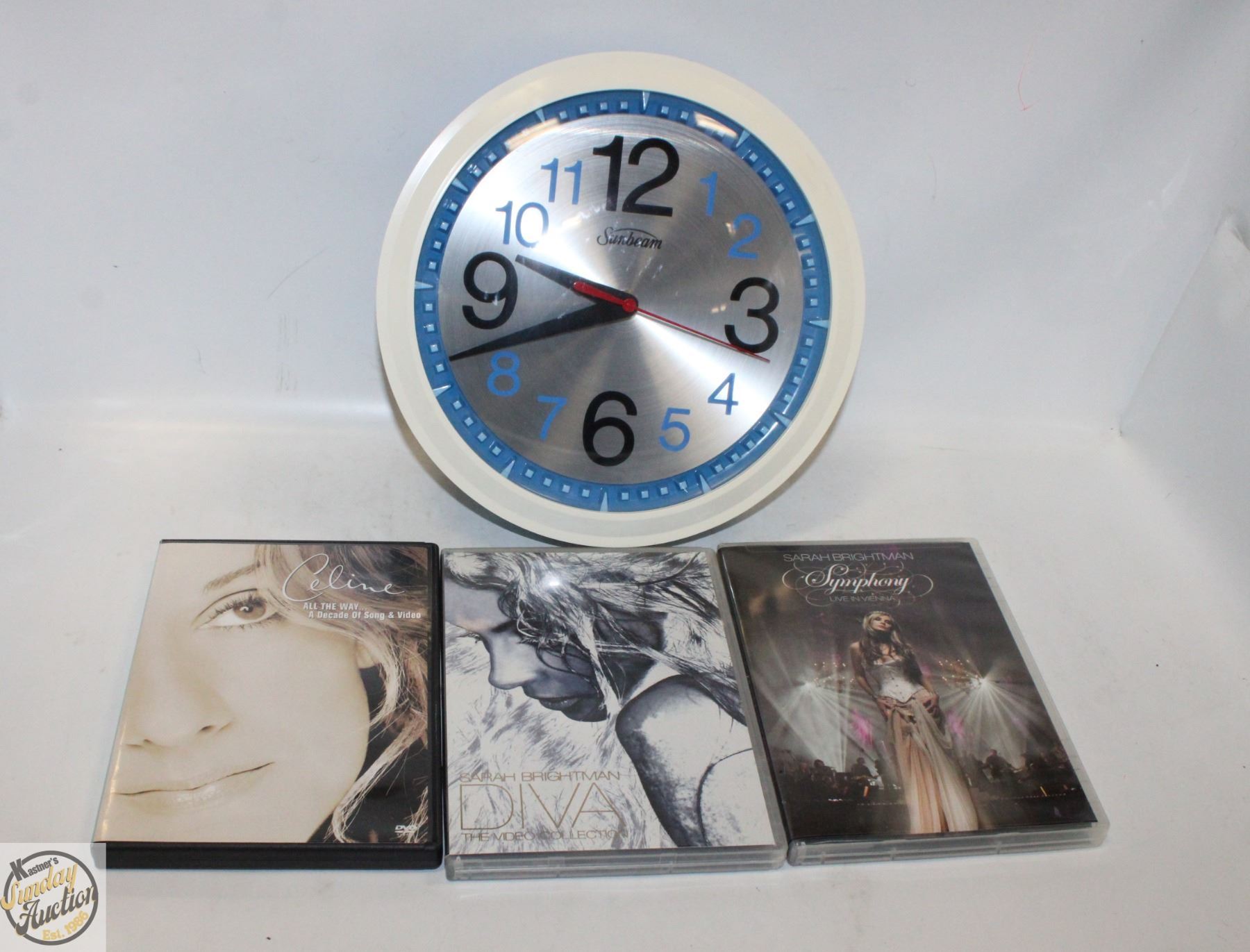 WALL CLOCK WORKING + ESTATE DVDS **ALL ITEMS MUST BE REMOVED BY 5PM SATURDAY, AUGUST 9 2025. ALL REMAINING ITEMS WILL BE SUBJECT TO A $6.00 PER DAY STORAGE CHARGE. ANY ITEMS REMAINING AFTER MONDAY, AUGUST 25TH 2025 WILL BE CONSIDERED FORFEITED. NO REFUNDS WILL BE ISSUED FOR FORFEITED ITEMS. TO SCHEDULE A PICK UP APPOINTMENT CLICK HERE