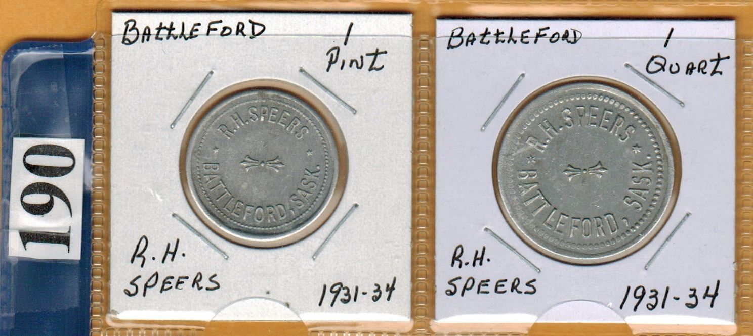 BATTLEFORD DAIRY TOKENS - R.H. SPEERS - PINT & QUART - Used from 1931 to 1934