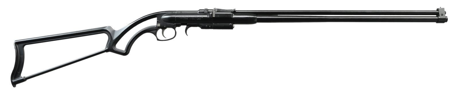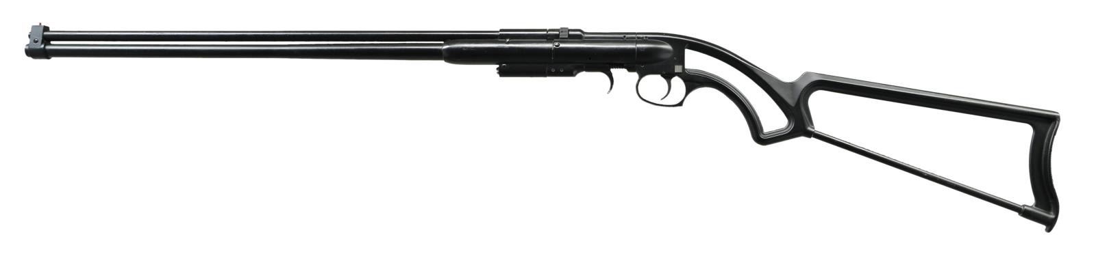 Cal..22lr/.410 S#003946 Bbl. 20.5" An over/under combo gun w/ selectable barrels. Swing out design w/ manual extractor / ejector. Black painted finish. Skeleton stock. CONDITION: Finish is complete & consistent. Original finish is remarkably unblemished. Bores are bright. rimfire bore has descent rifling while shotgun barrel is shiny. Fire control mechanism appears to function correctly when cycled by hand. (22-2645/JZ). MODERN. $100-200