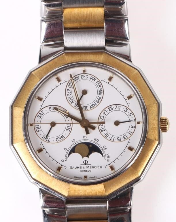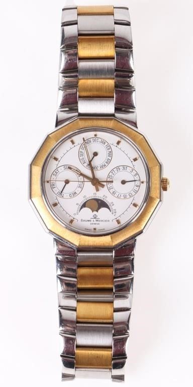 Baumes & amp; Mercier Riviera Geneve 6131.2 triple calendar men's two-tone wristwatch. Moon phase quartz.