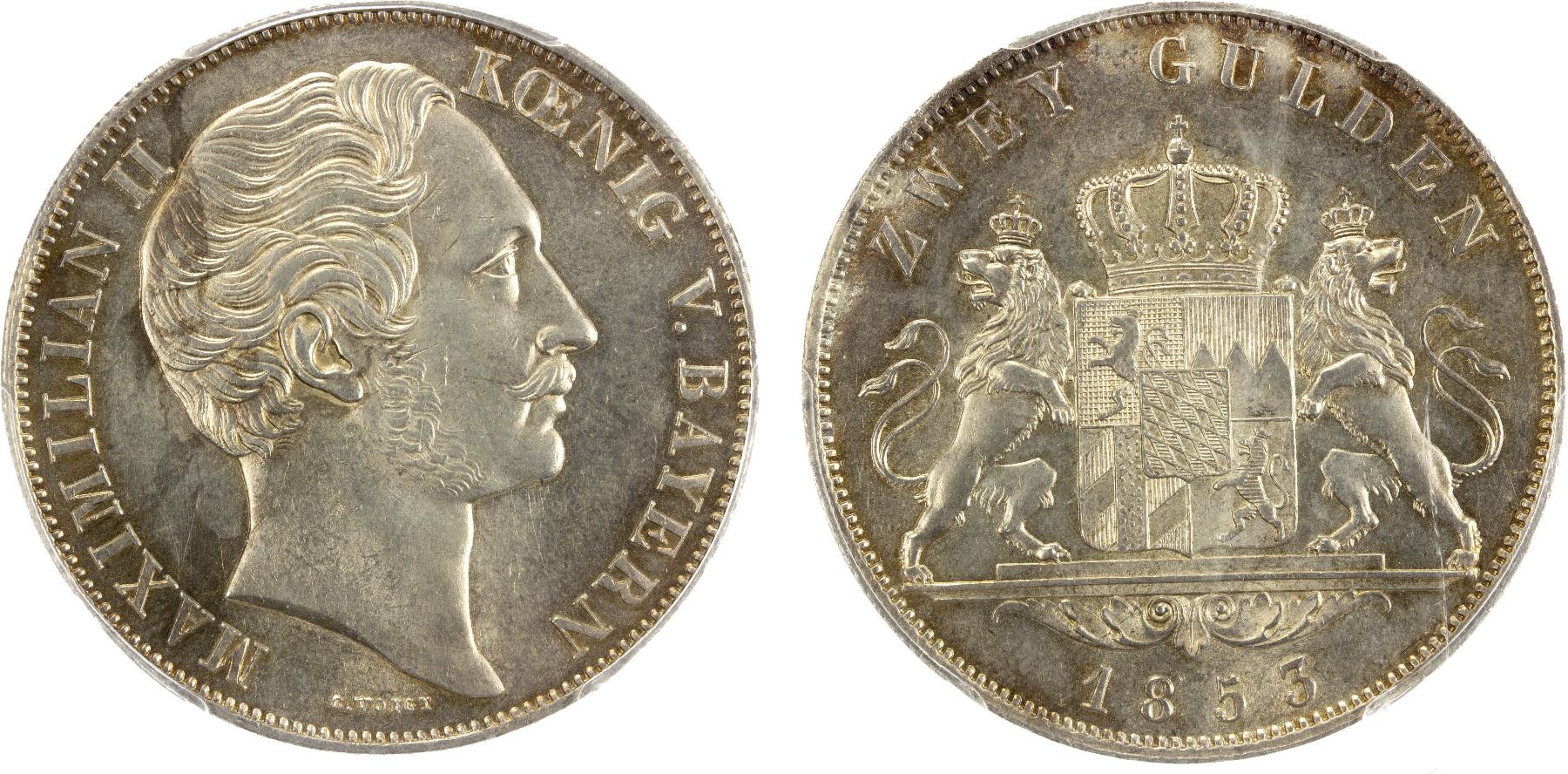 BAVARIA: Maximilian II, 1848-1864, AR 2 gulden, 1853, PCGS MS62